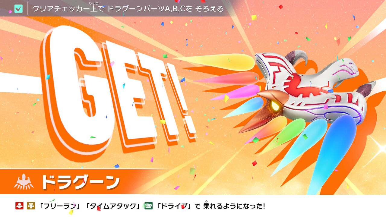 そんなこんなで何十回かプレイして、最後のライダーになった「マホロア」を解禁したり、ドラグーンのパーツのチェッカー3つを埋めて「ドラグーン」はフリーランなどでも使えるようになったり。