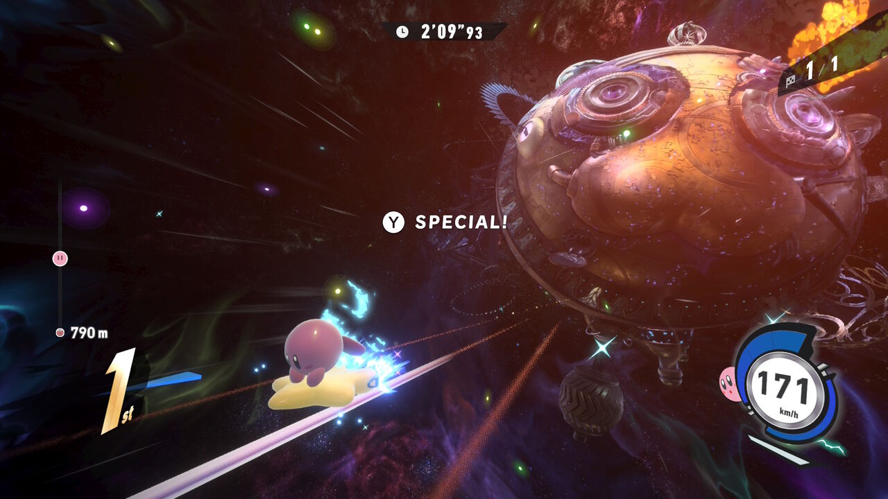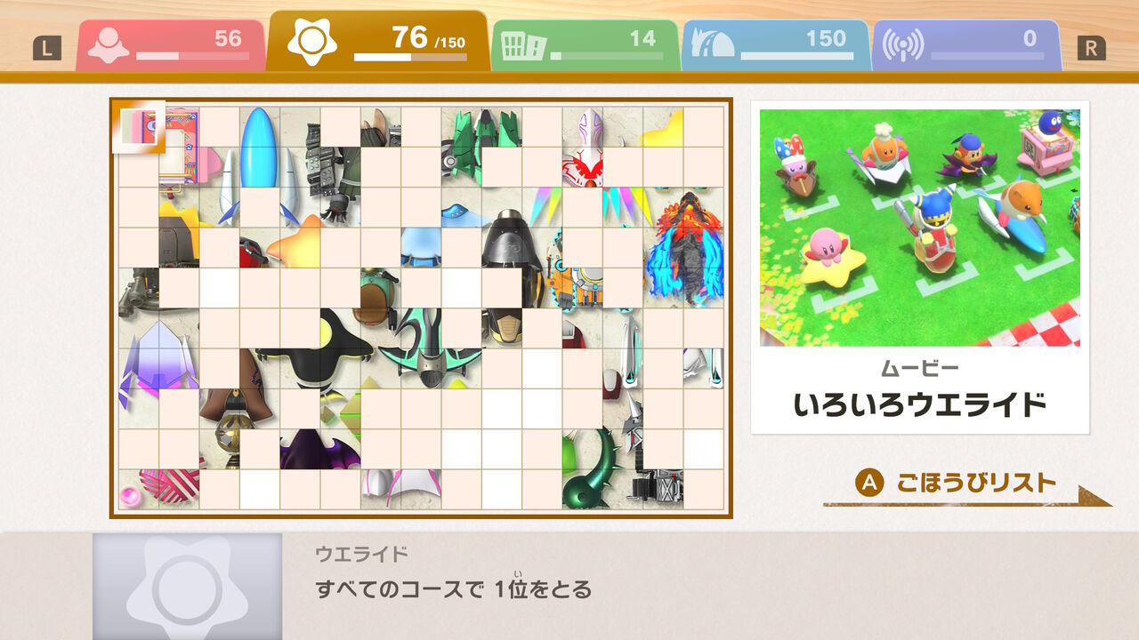 こちらは「スターマン」や「グーイ」、「ドロッチェ」といったキャラ、「バトルチャリオット」といったマシン、あと15回1位で「宙」コースが解禁。また全てのコースで1位を取ったら限定ムービーも開放された。