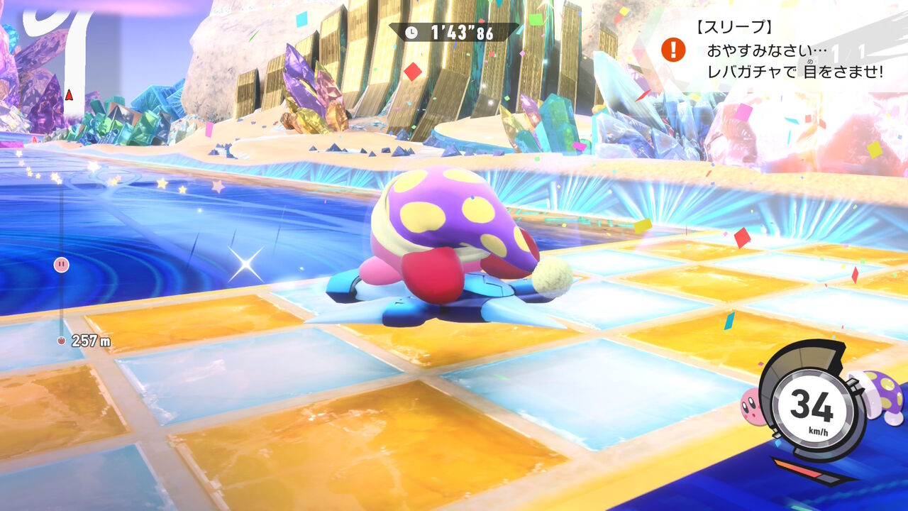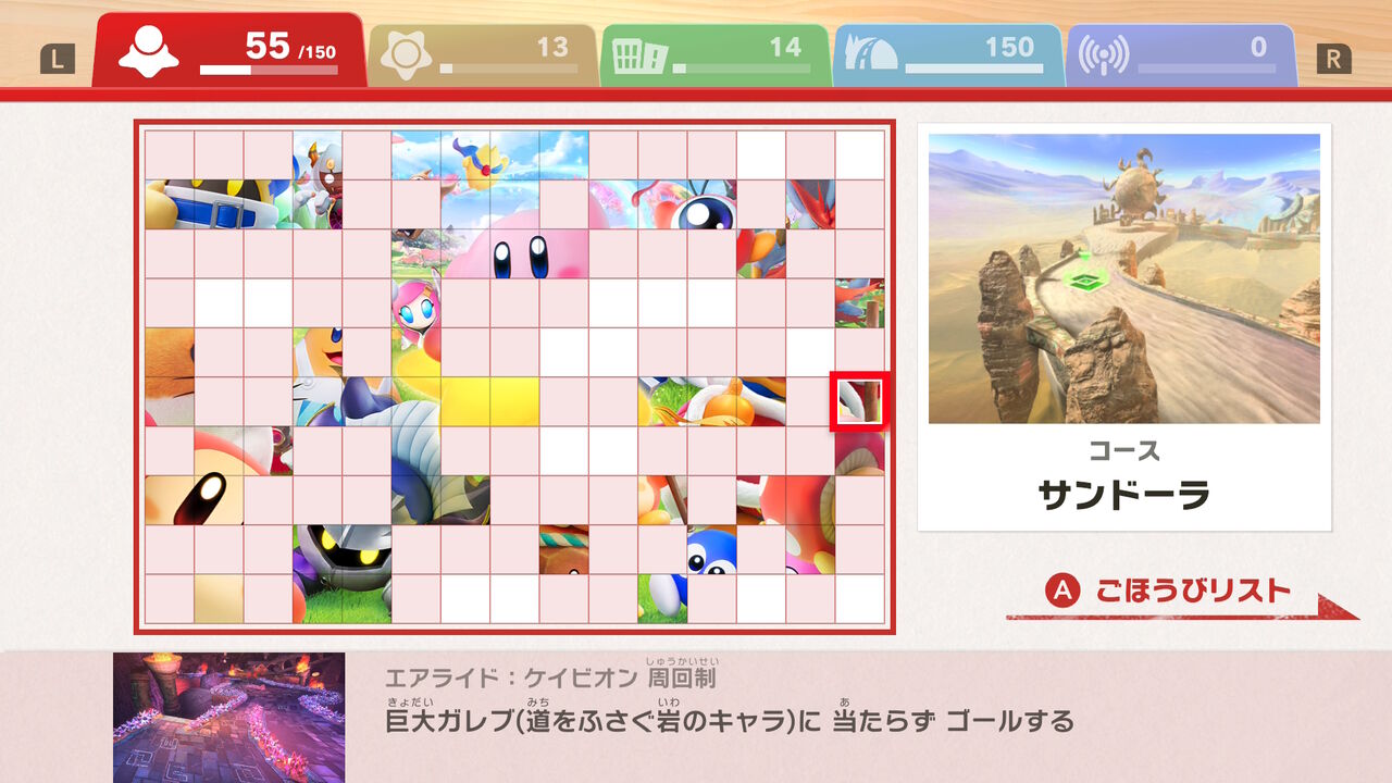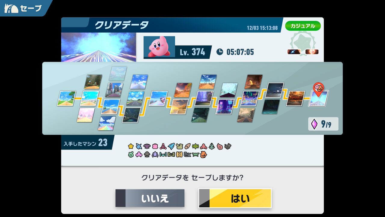 そんな感じで「タランザ」「スカーフィ」などのキャラ、「ペーパースター」「ヘンシンスター」などのマシン、「サンドーラ」のコースなどを解禁。まだちょっと未解禁のコースとか残っているのだけど、条件がちょっと難しくて達成できなかったので一旦スルー。