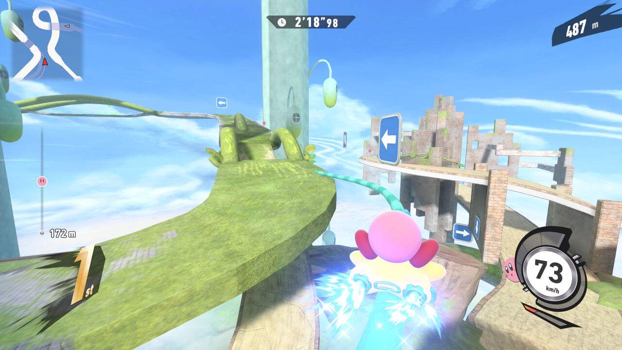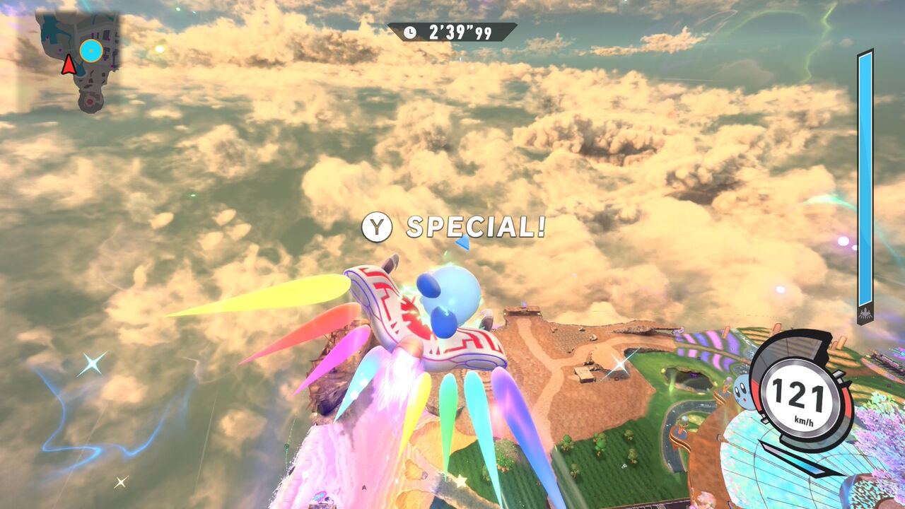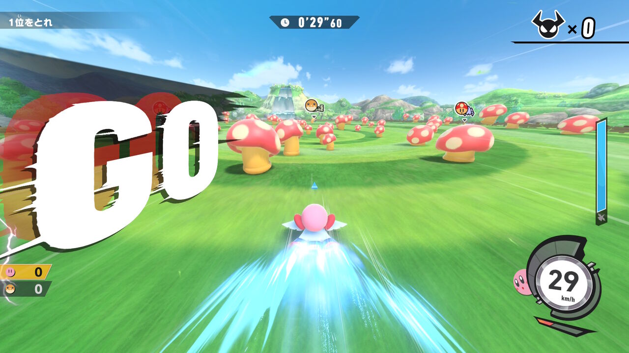 シンプルに走ればいいものから、敵にぶつかるなとか、数秒間滑空しろとか、コース固有のギミックが絡むものとか様々。指定されなければ周回数やCPUの強さ・ハンデは自由なので、1周にしてCPU Lv.1+ハンデ4とかにしてやれば比較的達成しやすくなる…かも?