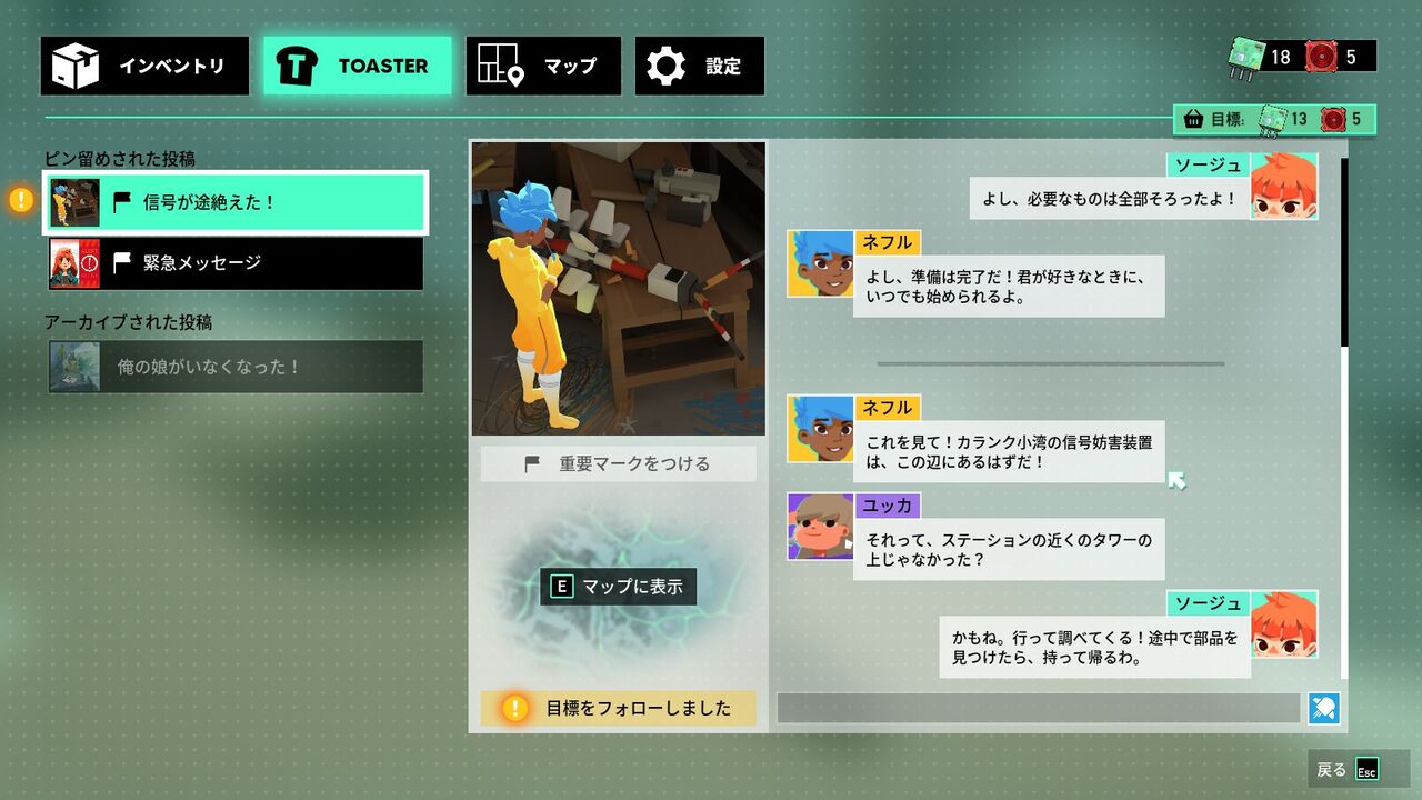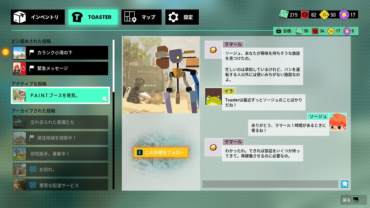 当初はCPUフルで入れてやっていたのだけど、キャラとか探索の仕方とかをいろいろ試したりクリアチェッカー達成のために邪魔にならないようにするため、CPU Lv.1+ハンデ4を1人だけ入れて7分間でやることにした。基本的に邪魔にならないのだけど、時々しれっと伝説パーツ揃えたりするから謎。