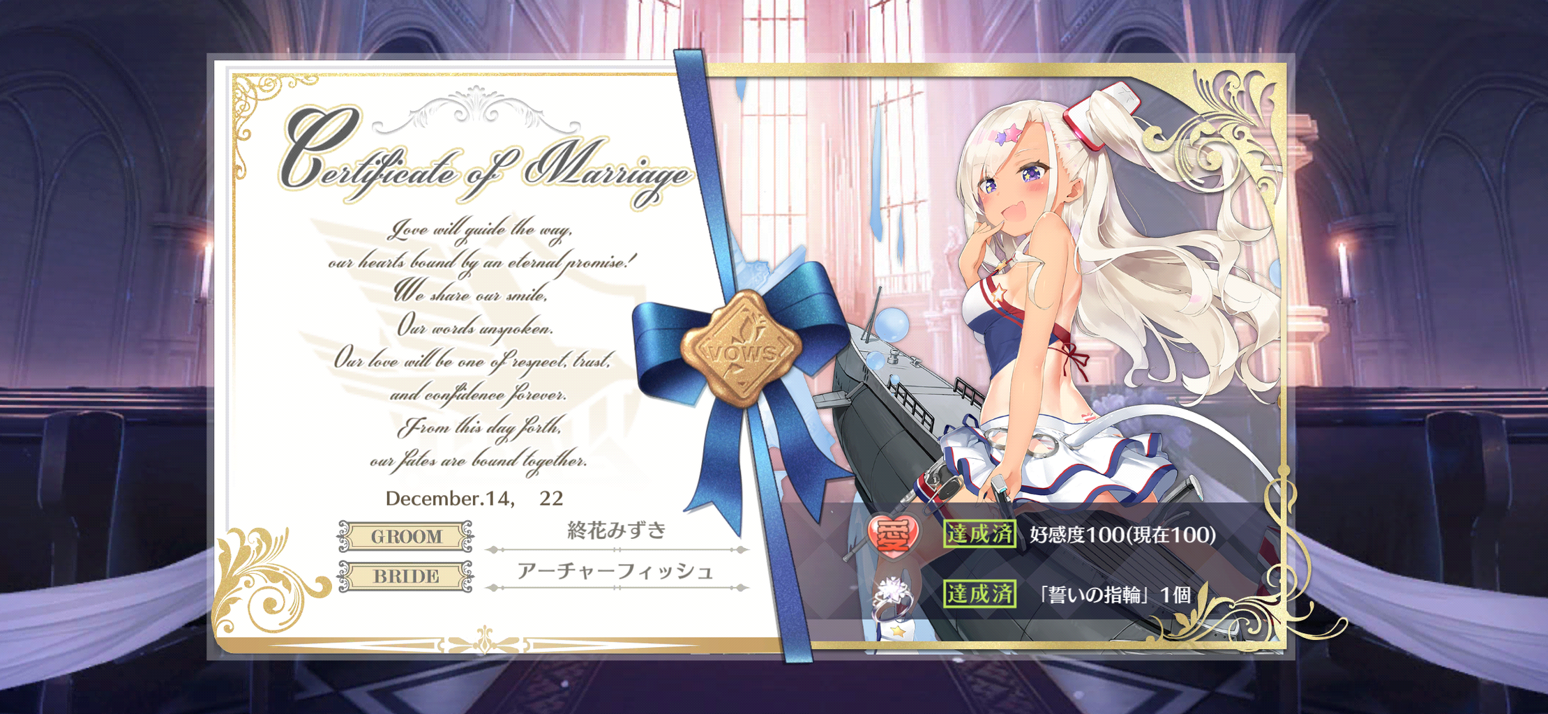 褐色?メスガキちゃんとケッコンしました。一応指輪付ける時の手は褐色バージョンだけど、この娘ただの日焼けでは…?