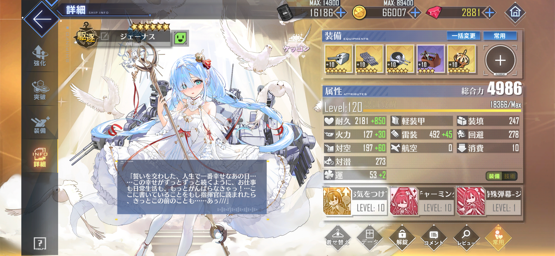 これで開発艦V期も全員完全体になった。実装が今年の7/14だったので、ちょうど5か月か。しかしまだこの後は竜骨編纂の分を集めないといけないわけで…その竜骨編纂がいつ来るかはともかく。