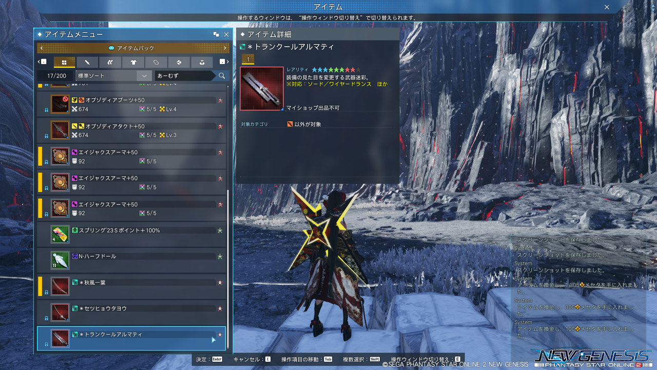 ちなみに最初に出たのはカタナ。期間限定クエを初見ソロで様子見しに行ったときに即出た。