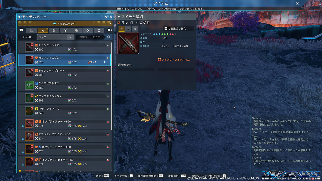 デイリーがてらスティアの戦闘セクションで「ガンブレイズダガー」とか「セイガヨウワイヤー」とか拾った。ガンブレイズ全然でねーなぁ。やっと2種だよ。