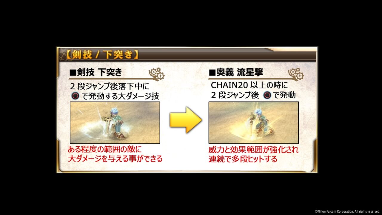 他にも降下中に攻撃とか、回避の後に攻撃とかいろいろある。いろいろあるのだが一度覚えると外せないので場合によっては暴発するし、元がPSPゆえ少ないボタンでの組み合わせで思ったように出せないことも。自由に設定できるノイの魔法と比べるとちょっと難儀。