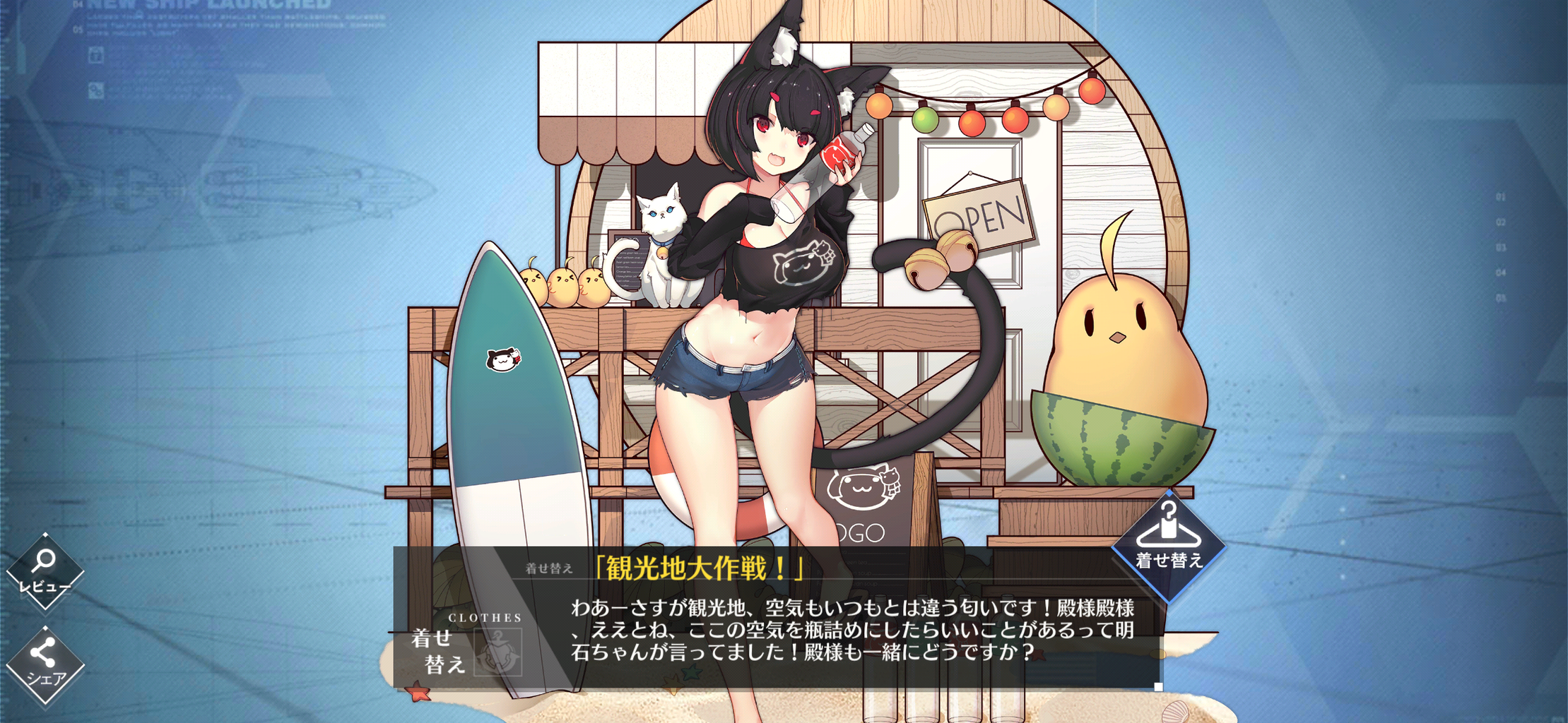 そんなことより最近の着せ替えは背景もセットで付いてくるもんだから、久々に普通のレアリティに応じた通常背景を見た気がする。すごい違和感。