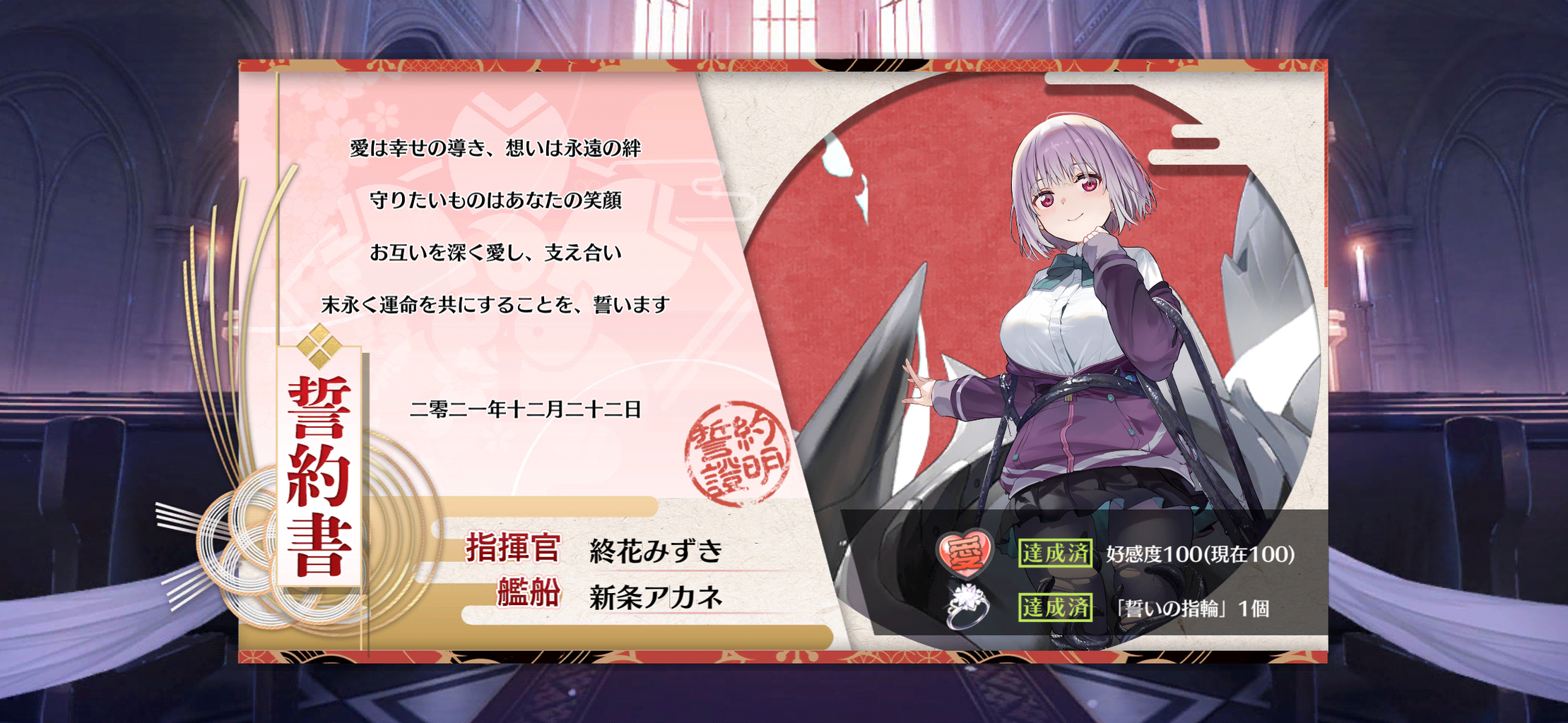 史実では練習巡洋艦ながら、その名に恥じない強力なスキルを持つ聖女とケッコンしました。