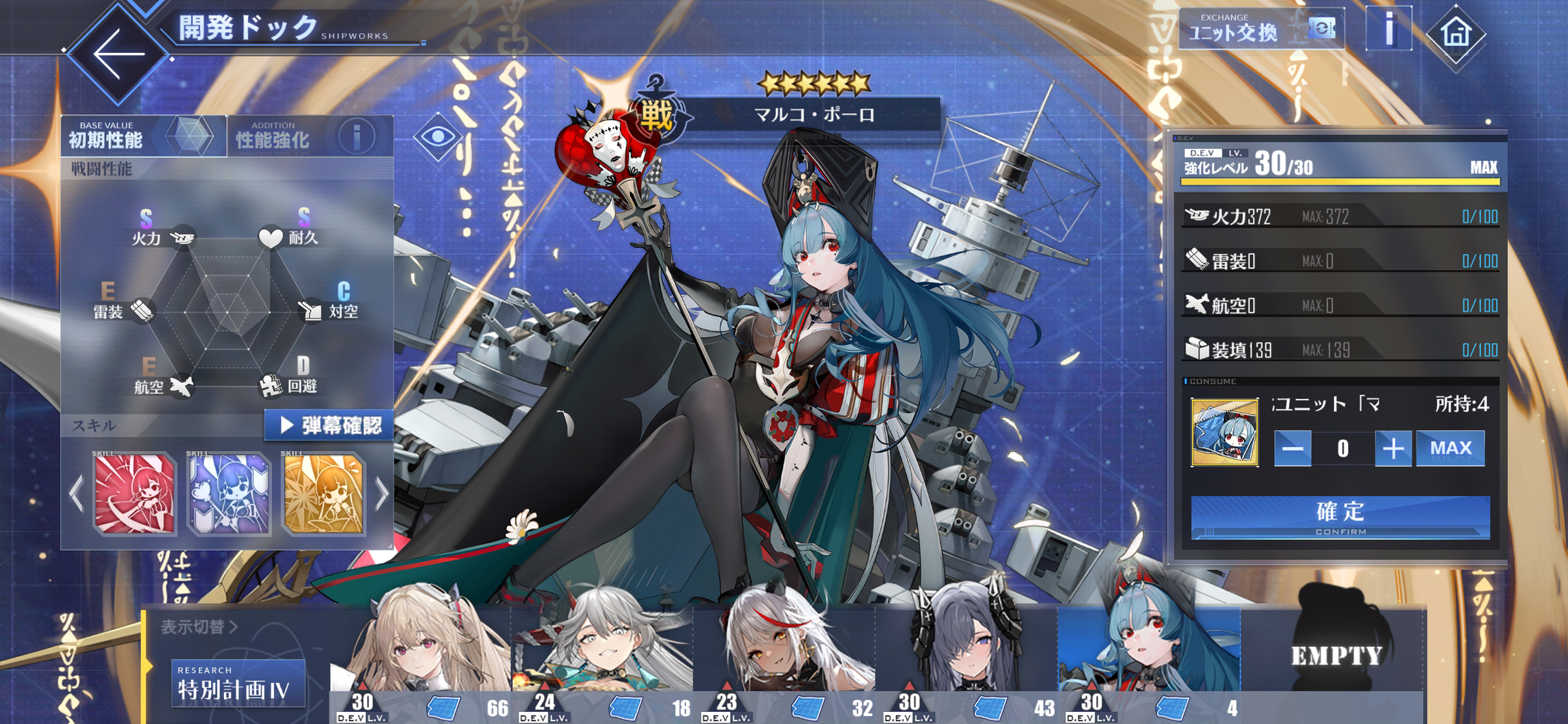 育成していた「ペーター・シュトラッサー」、119で止まっていて溢れた経験値パックをどうにかするために投入した「アストリア」「クインシー」「ヴィンセンス」「Z18」「Z19」がLv.120に到達。