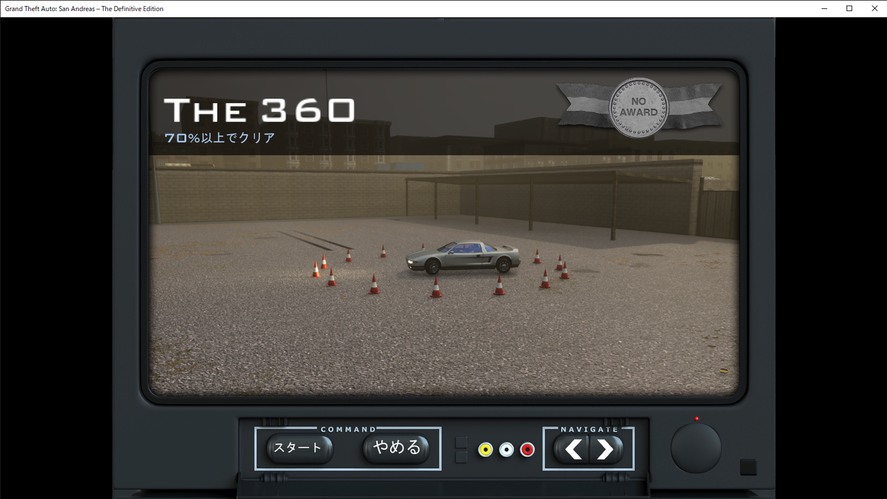 で、今回ストーリーが進まなかった要因は「ドライビングスクール」に行ったから。上述した「Deconstruction」をクリアするといけるようになり、全12種目に挑戦することになる。記事タイトルに教習所って書いたけど、ゲームなので普通の運転というよりはテクニック的な面が大きい。
