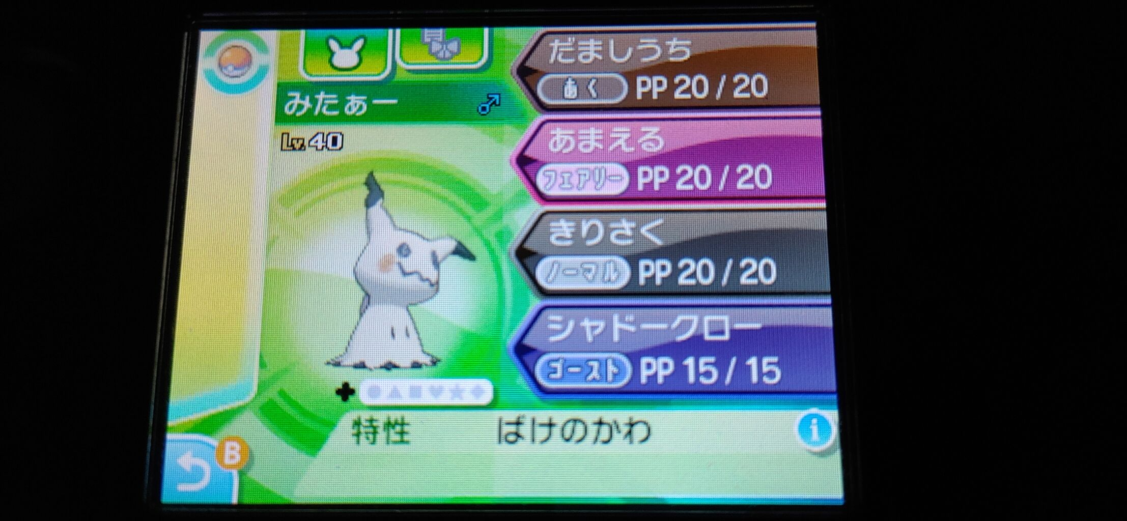 …なのだが、開幕クイックボール投げたら捕まってしまった。まぁ調べたところ捕捉率はシナリオで確実に捕まえる必要のある伝説たちと同じようなので、開幕クイックボールでも全然捕まる確率らしい。厳選はめんどくさいからやってない。