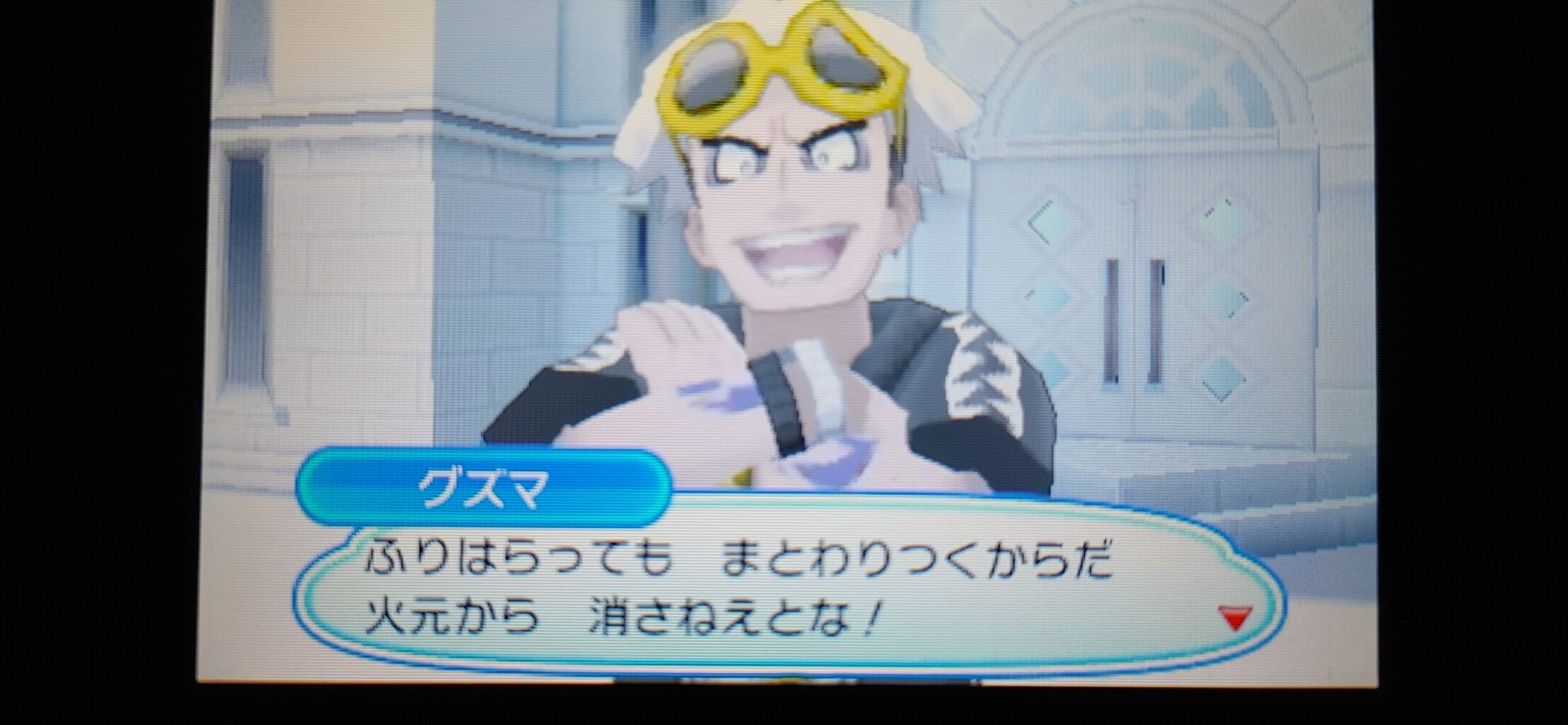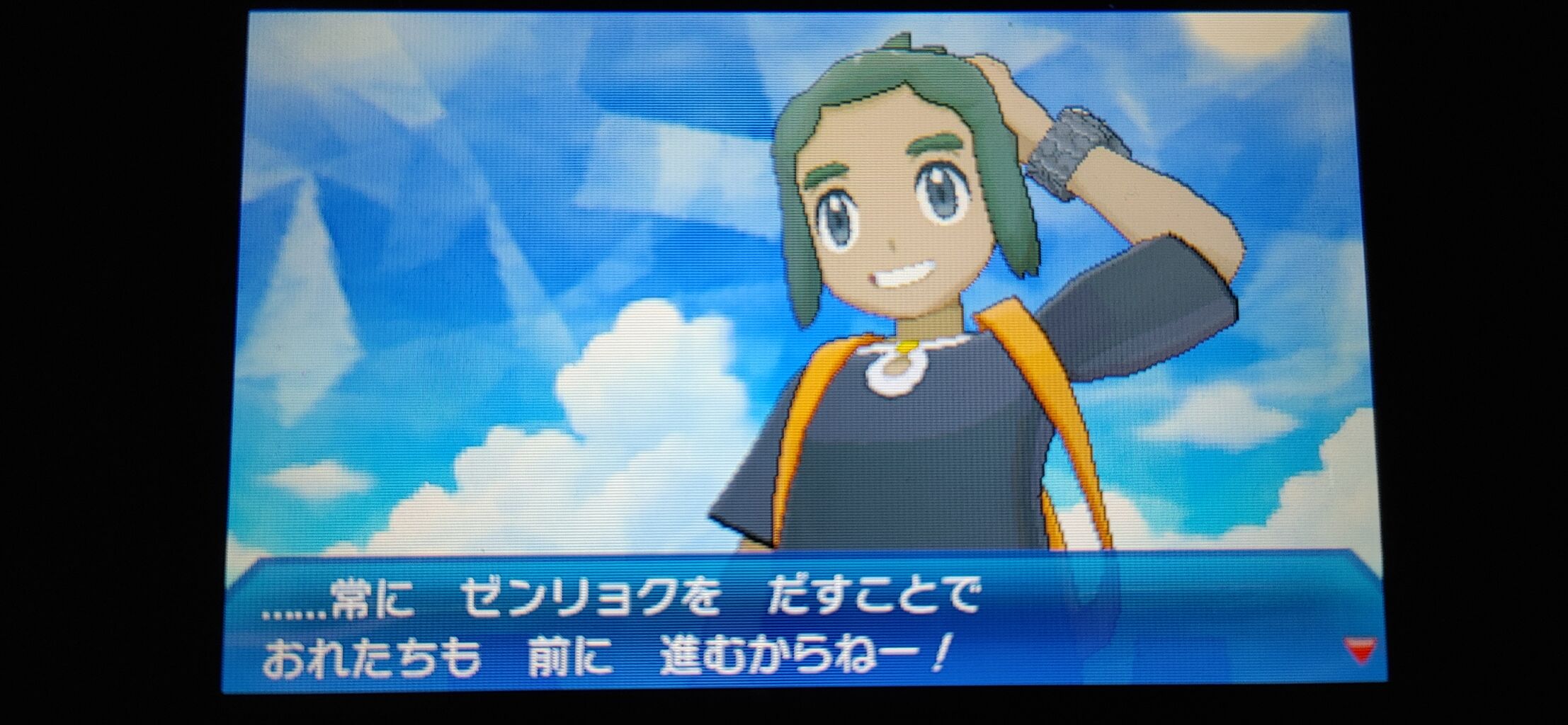 肩書が「ポケモントレーナー」になっており、手持ちは「クロバット」「ルカリオ」「ゾロアーク」、そしてタイプ:ヌルが進化した「シルヴァディ」の4体。例によってゾロアークは他の手持ちに化けているのだが、今回はルカリオに化けていてオンバーンの「おみとおし」でアクZが出てくるもんだから一瞬でバレバレだった。シルヴァディはよくわからんけどサクッと倒せた。