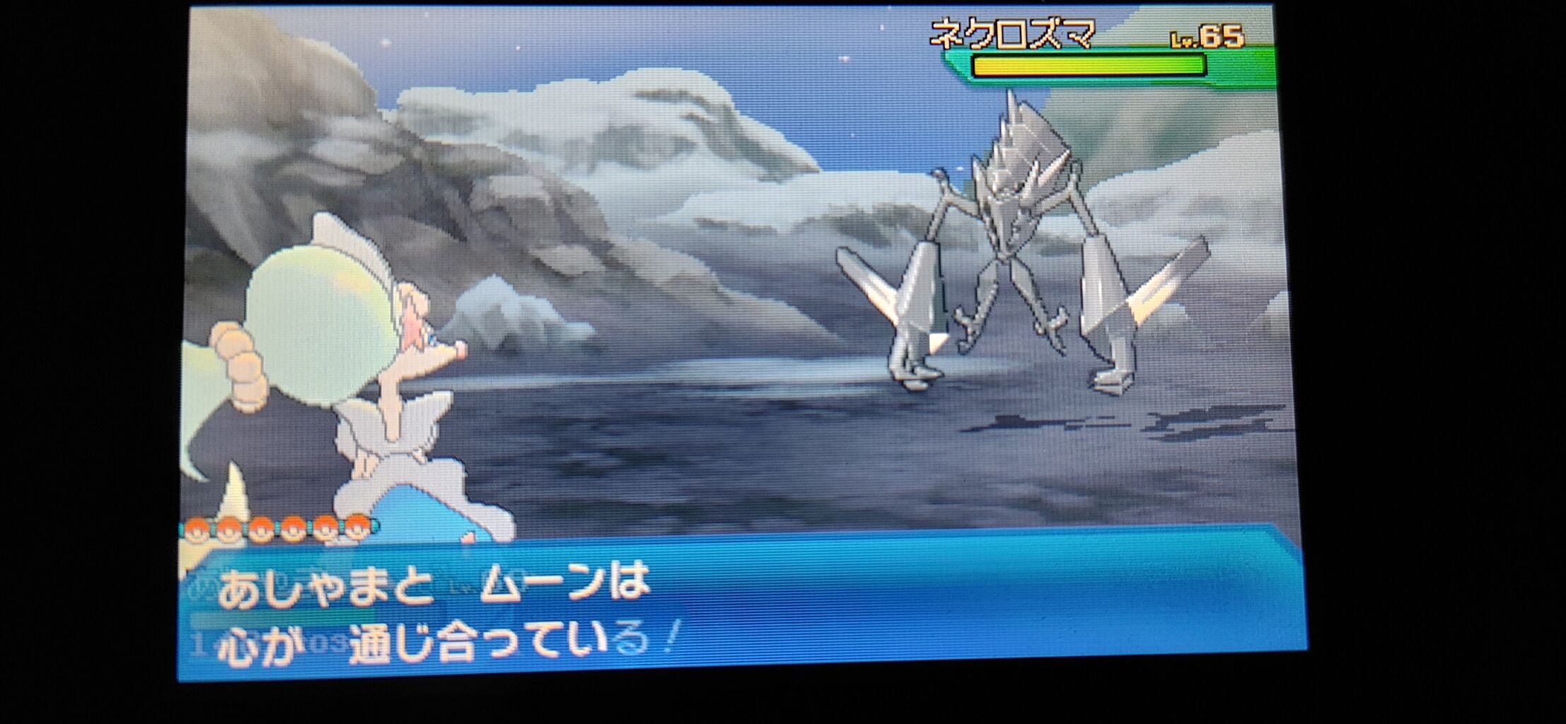 ラナキラマウンテンに戻ってトレーナーたちを倒しながら進んでいくと、途中でなんとネクロズマが跪いて倒れているのを発見。Zパワーリングの光を与えると戦闘になり、ついに捕獲可能になる。