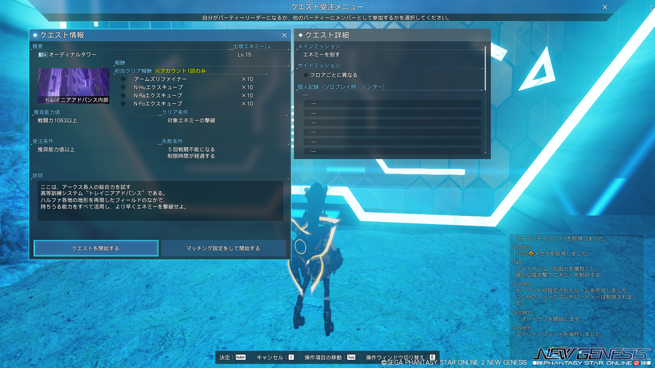 クエスト内容としては出てくるボスを倒すだけのシンプルなもの。4人マルチなので、ソロやPTメンバーだけでやりたい場合はマッチング設定の必要あり。