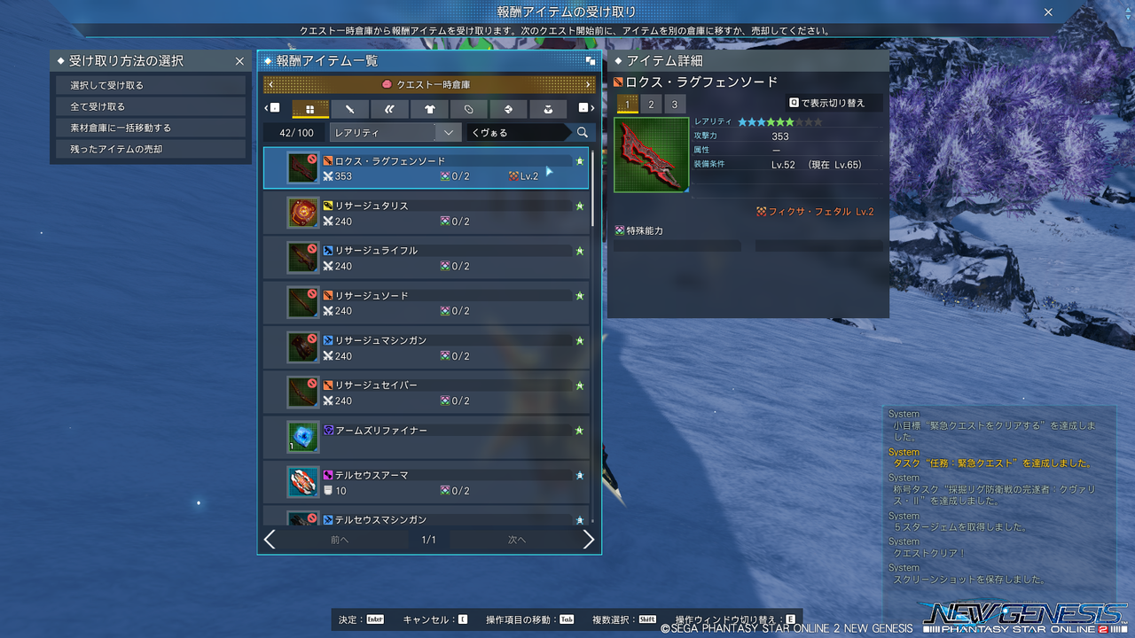 ちなみにこの時バーストfが起きて大量のゴルドが手に入ってしまい、とりあえずゴルドとシルヴァ以外を処理して…と何も考えずに売却"した"瞬間に存在に気づき、武器コレクターは引退したけどやっぱり1本くらいは自分で手に入れたの取っておきたいとショップで買い戻した。そんな高くもなかったし。しかしアイテムパックからの売却でもショップで買い戻しできてよかったぜ…