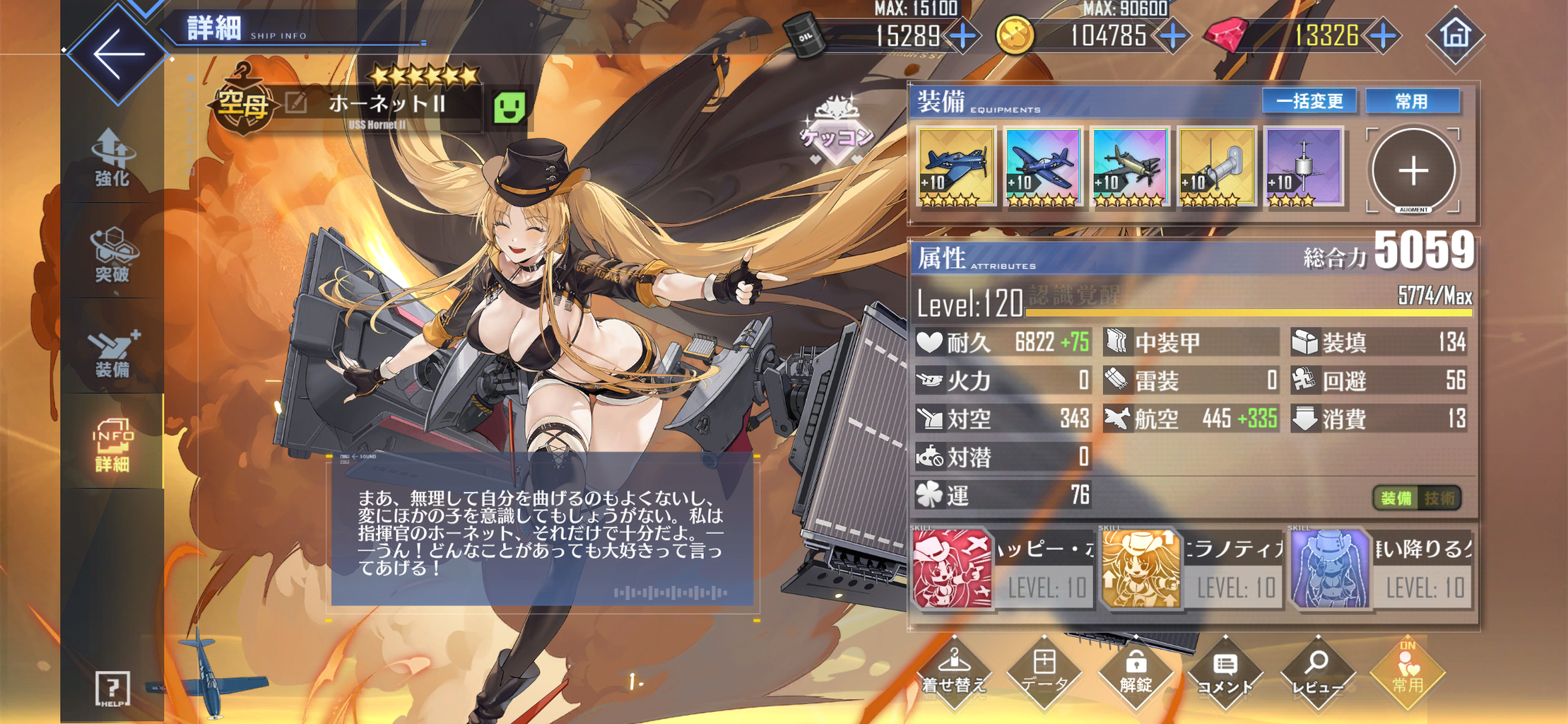 ホーネットは好きなキャラなうえIIで強くなったので、そのまま125開放。好きだからと強い装備を優先的に回してるのもあるけど、火力・生存力ともに高くて良き。