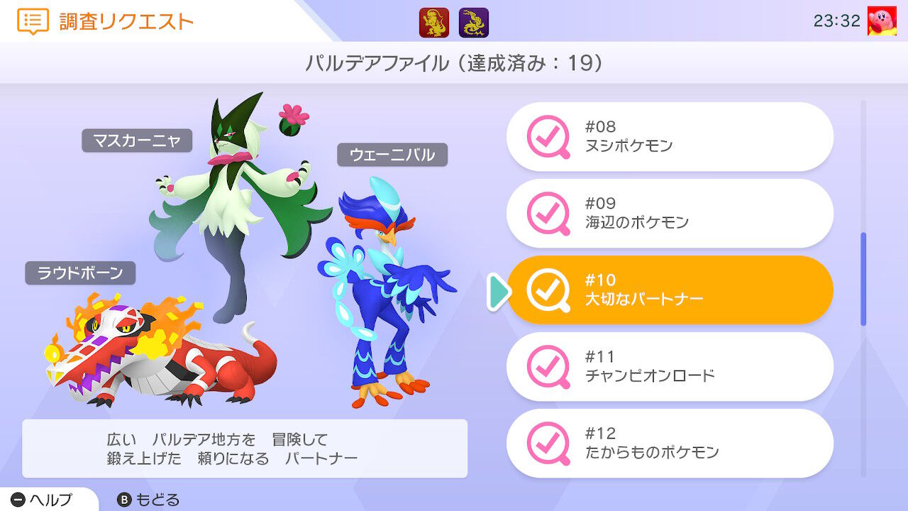 Switch版ではパルデアの調査リクエストが追加。全20項目。