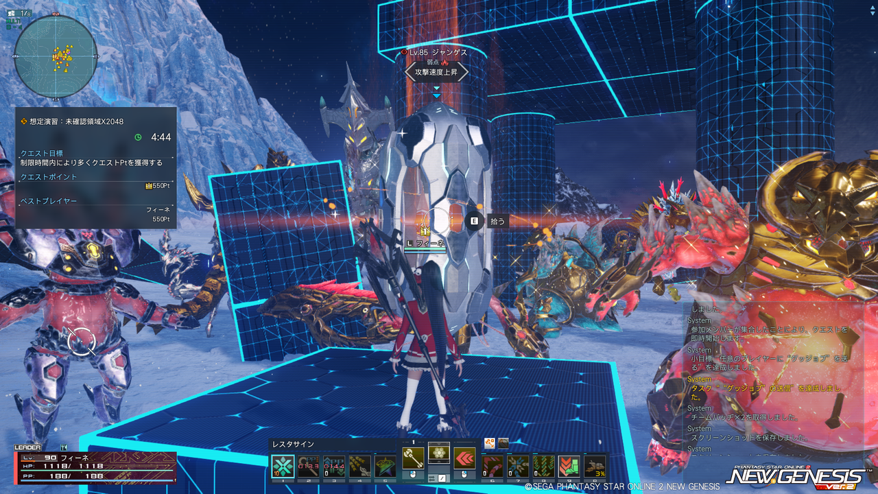 いつものやつ。ただフィールドが今までハルファ上空のトレイニアみたいなキューブで構成されていたところが、今回はまるでフィールドが地面に落ちた後のようにキューブなどが散乱した状態になっている。場所としてはクヴァリス。