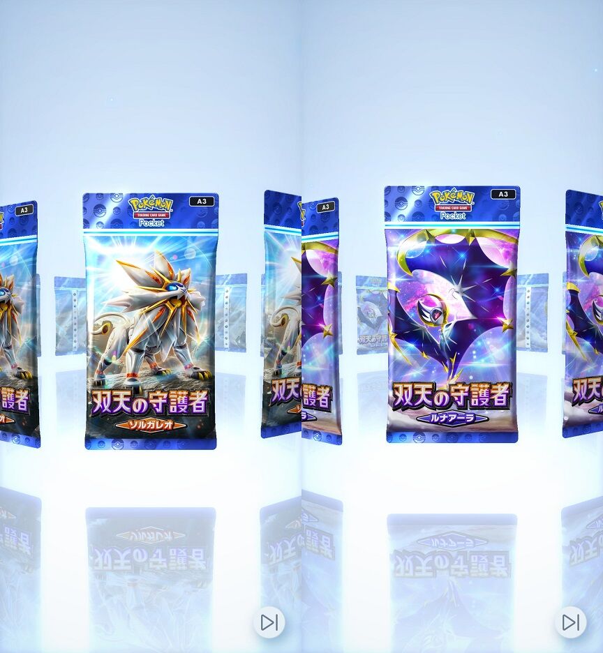 今回のパック名は「双天の守護者」。アローラ地方がテーマのパックで、「ソルガレオ」「ルナアーラ」の2パック構成になっている。また今回も色違いポケモンがいる模様。