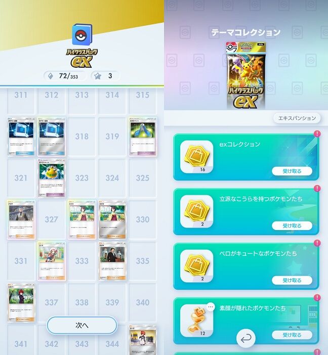 対してテーマコレクションの方は同一カード扱いで判定されるため、これまでのパックを開けてきていれば一気に達成できる。どのみちエンブレム交換には図鑑埋めも必要になるのだが。ちなみにエンブレムは「ゲッコウガ」と「ぱちぱちオドリドリ」。運営狙いすぎでは?