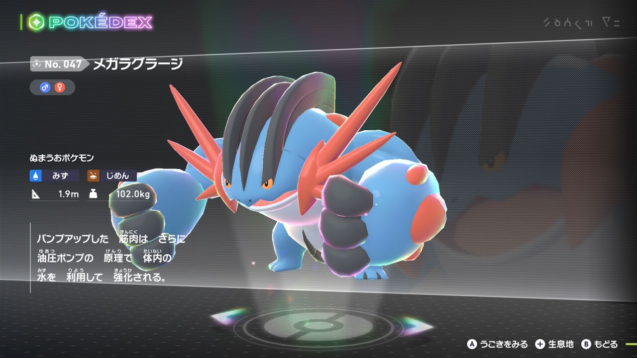 それは置いといて、念願の「メガラグラージ」!何度も言っている通り、ポケモンというコンテンツに触れた最初の相棒にして全ポケモンの中で一番好きなので、久々にメガシンカ見れてとても嬉しい。