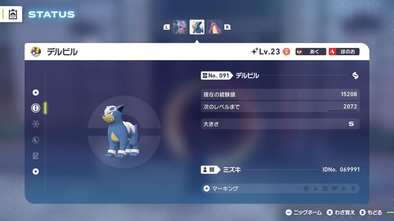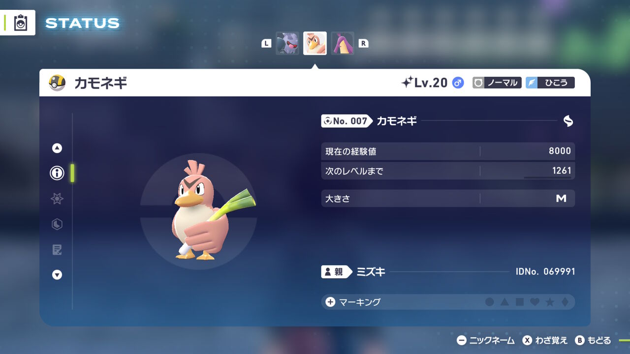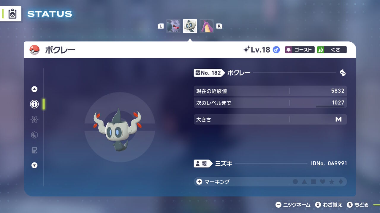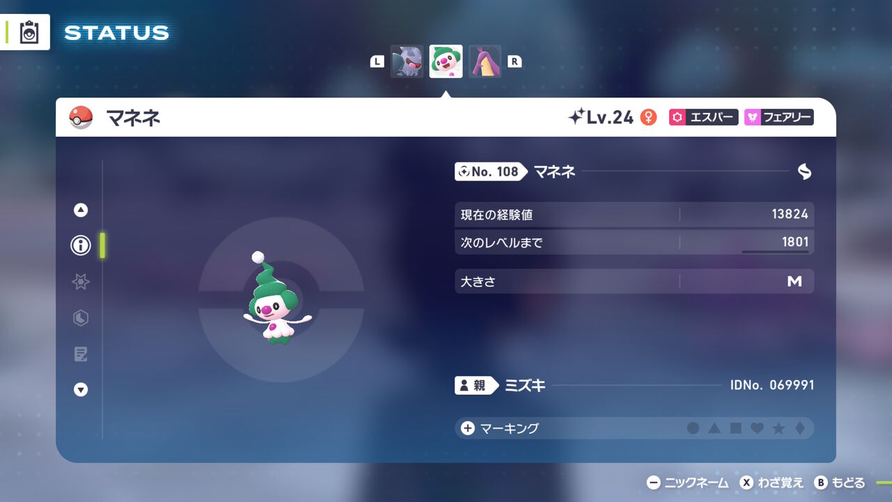 ついでに色違い。ZAでは初入手。当初はスペシャルサーチの水御三家異次元で、ケロマツ/ゲコガシラの色違いがボックスにいないから(ゲッコウガはいる)、一緒にまとめて厳選しちゃおうと思っていたのに、ここ数日スペシャルサーチそこそこの回数回したけど水御三家の異次元だけ全く出ず、諦めて普通にミズゴロウの湧く★3異次元で厳選した。代わりにオヤブンパワー付きだったのもあって、ミズゴロウ/ヌマクローが計4匹色違い湧いたうち、2匹オヤブンだった。