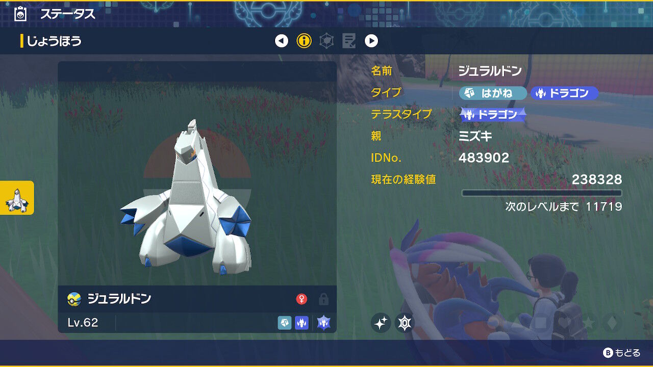 昨日から1/4まで、辰年に合わせて「ミニリュウ(パルデア)」「ジャラコ(キタカミ)」「ジュラルドン(ブルーベリー)」の3体のドラゴンタイプが大量発生。