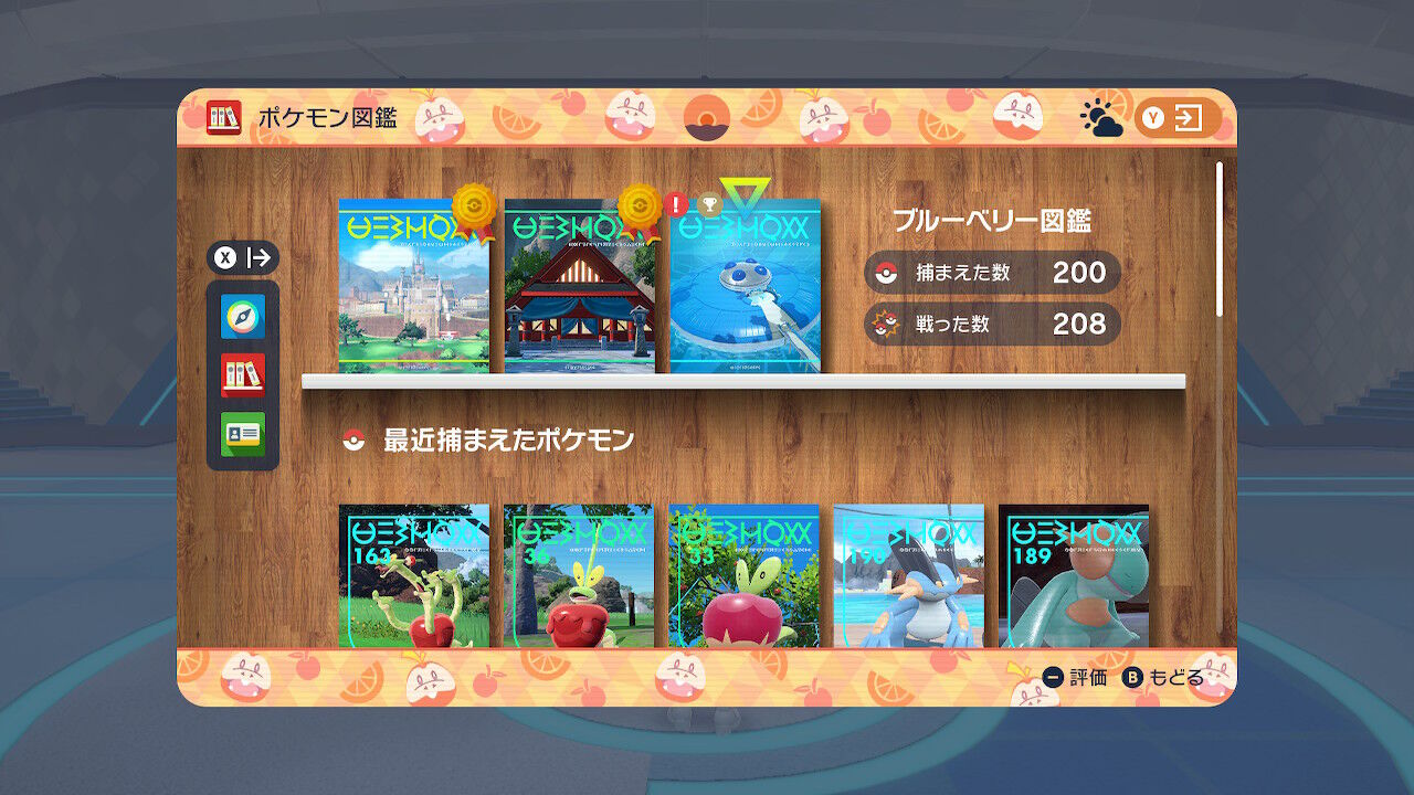 サザレのイベントを進めるために、とりあえずは200匹を目標。既にHOMEは解禁されているので送っちゃえば早いんだけど、スマホ版のソフト図鑑を折角なら埋めたいので、どうしようもならないところ以外は極力ブルーベリー学園内で捕まえるように頑張る。