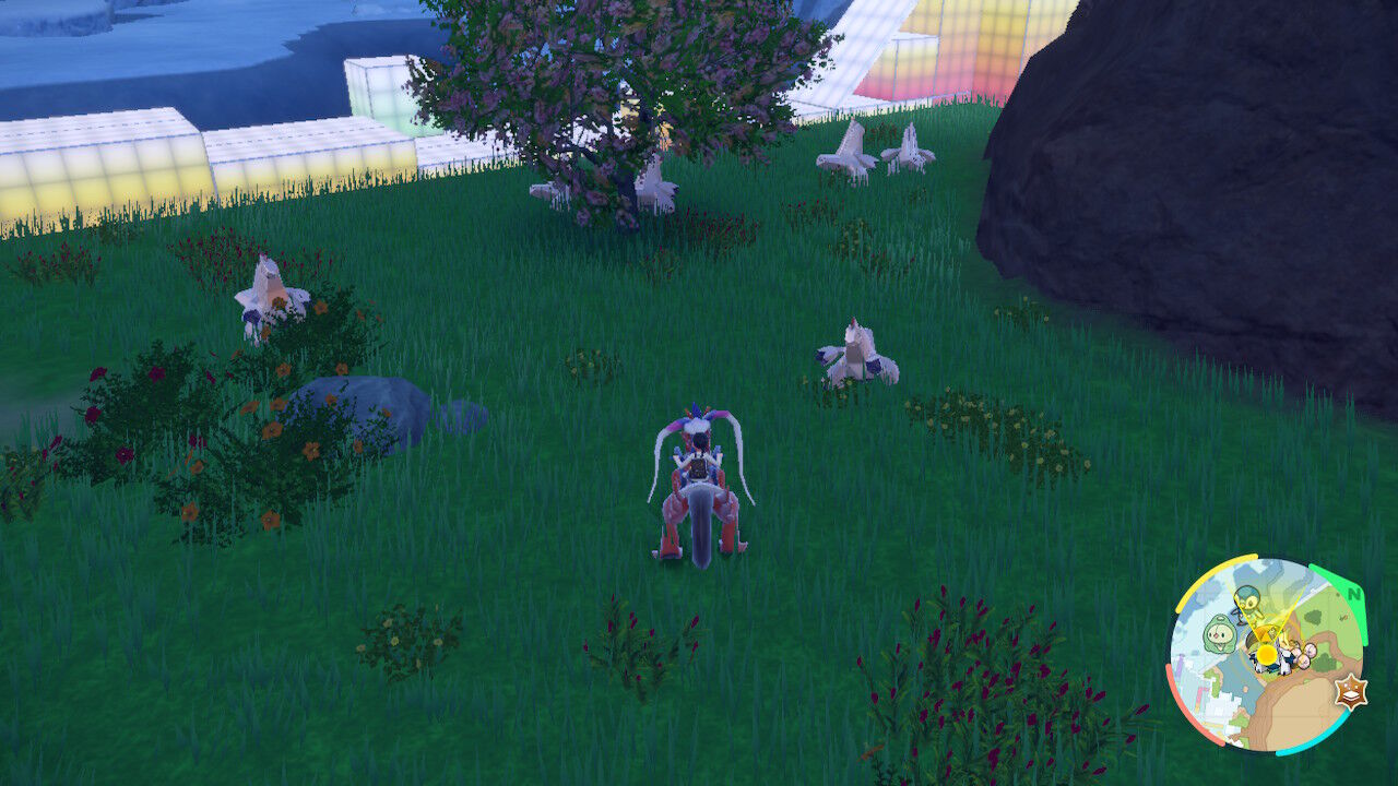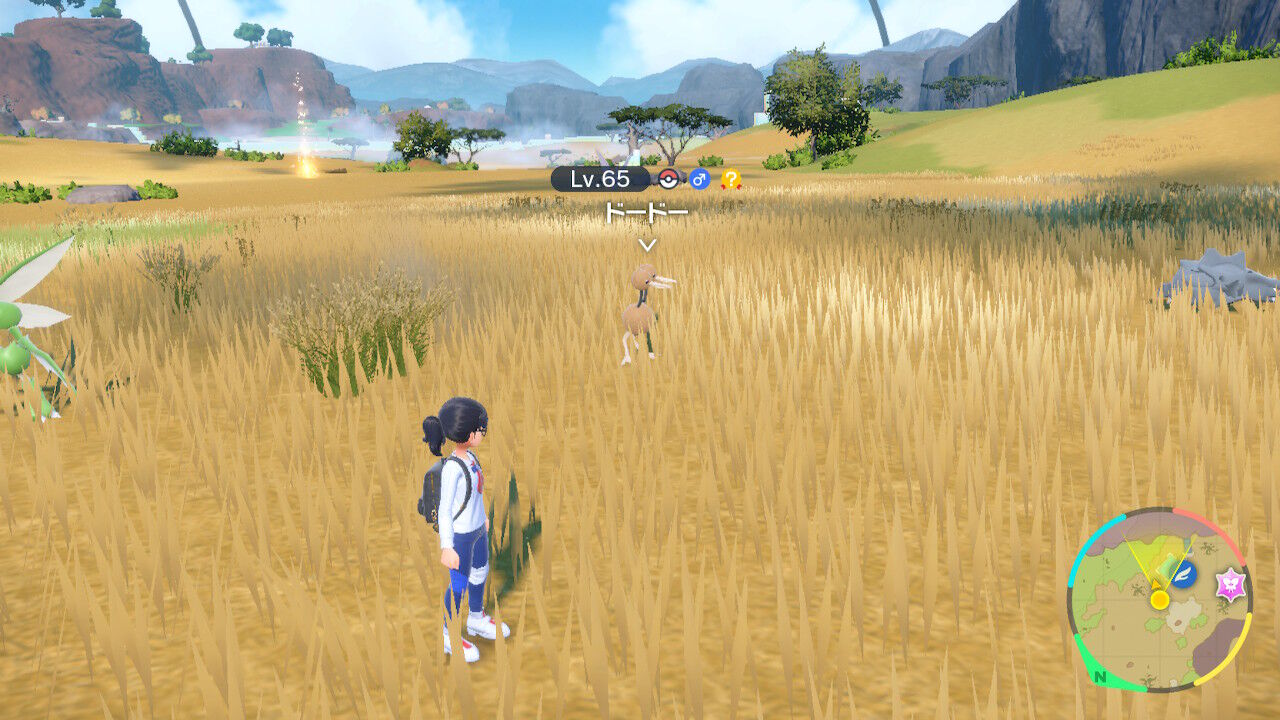 実は途中の高台に、本編では行くことのなかったルートがあり。本編同様結晶で道がふさがれているので、対応するステラテラスタルのポケモンを探すことになる。