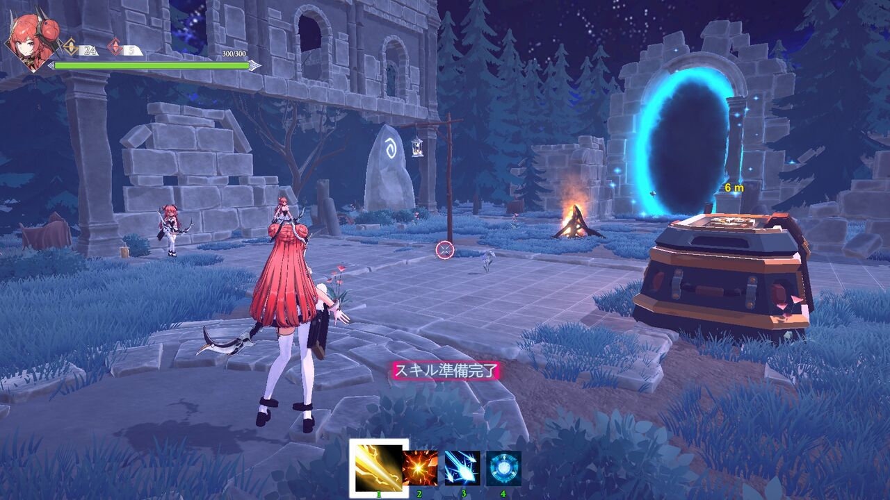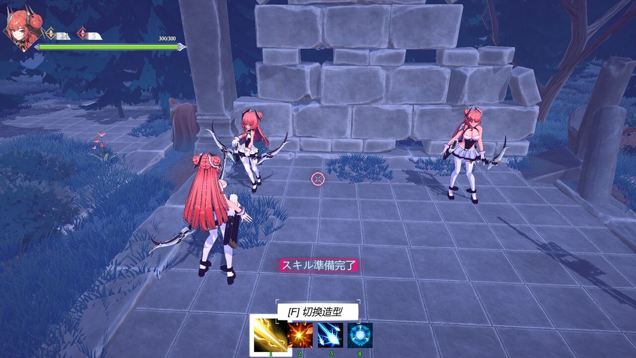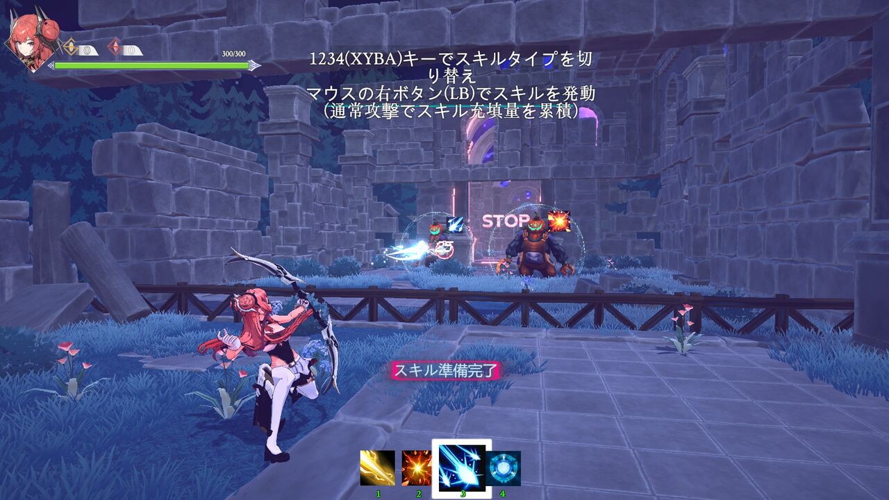 通常攻撃をある程度的に当てると画面中央下部のアイコンが表示されていって、キーボードの1~4で選択して右クリックでスキル攻撃を発動できる。