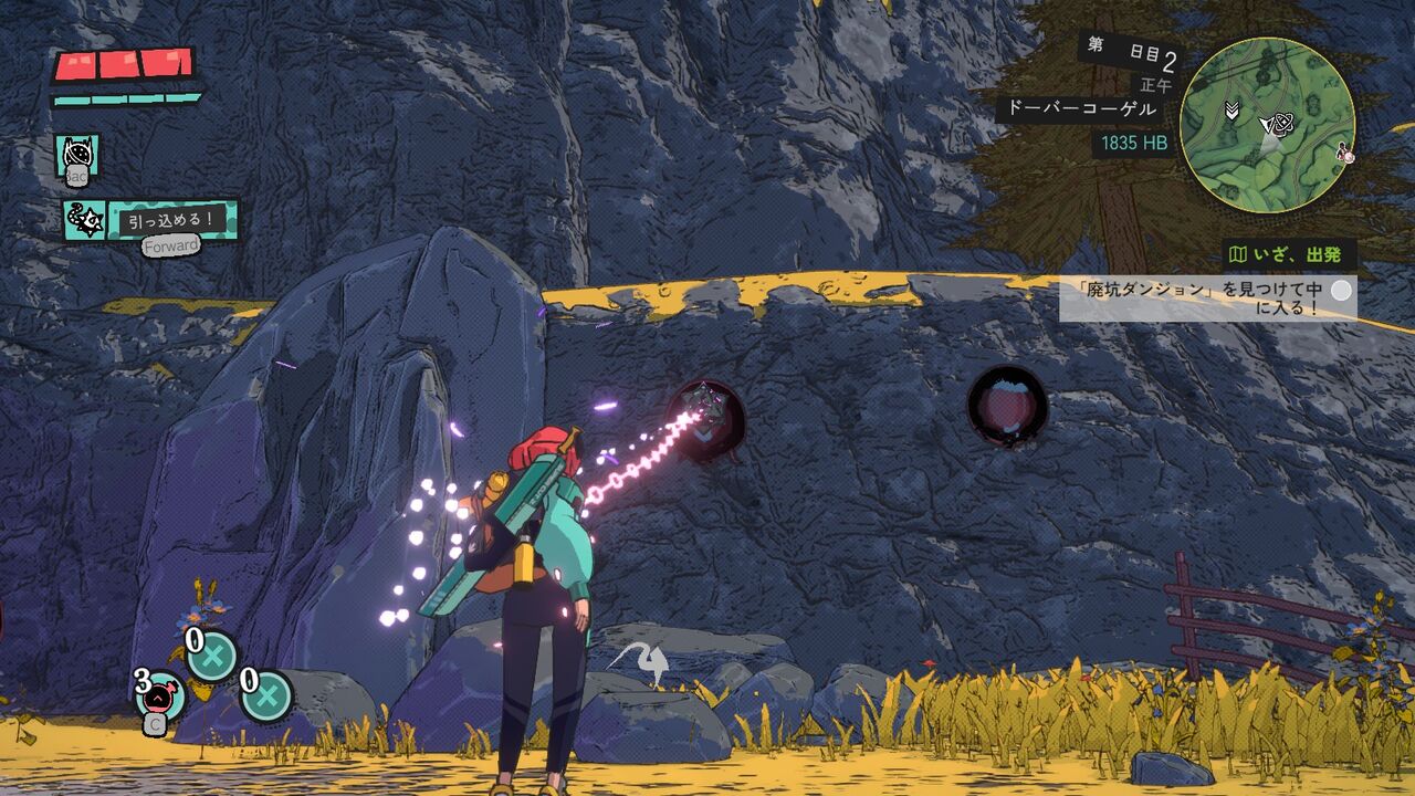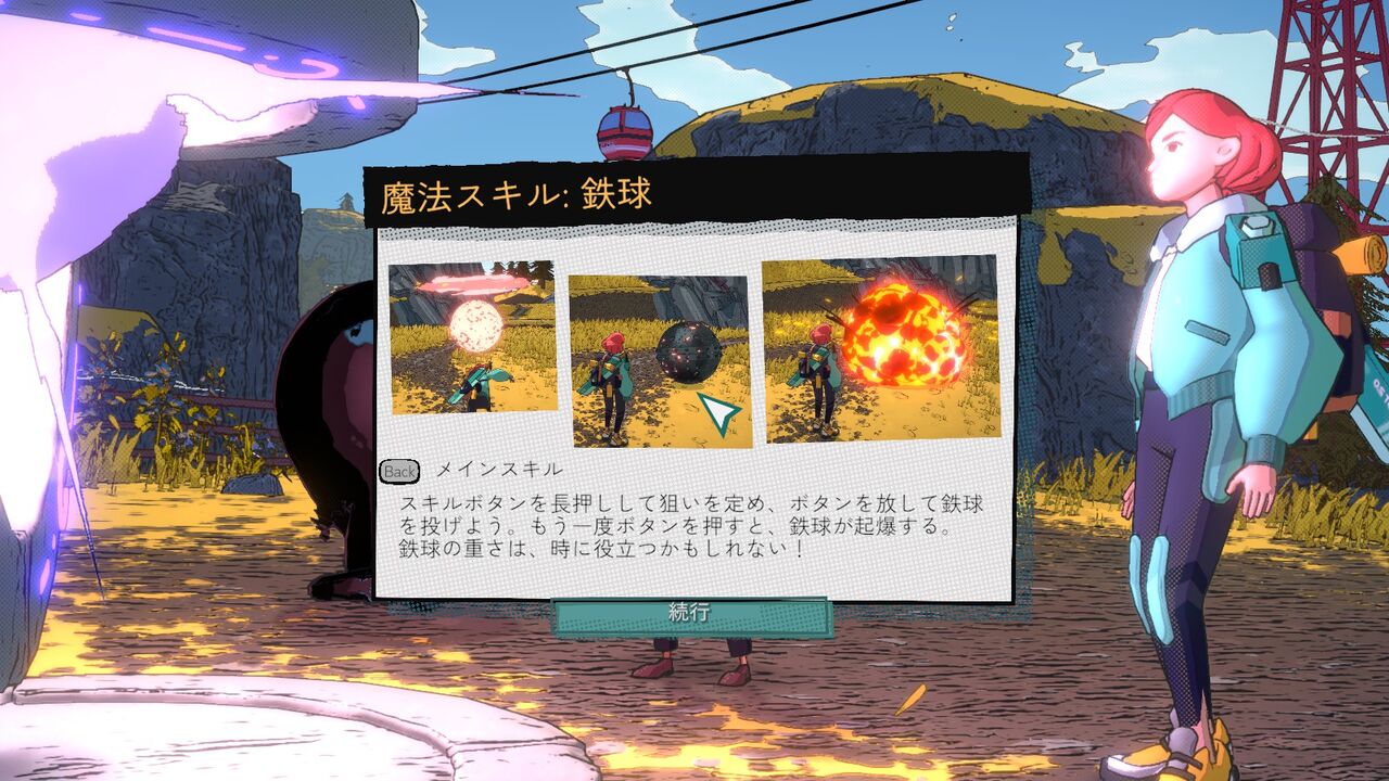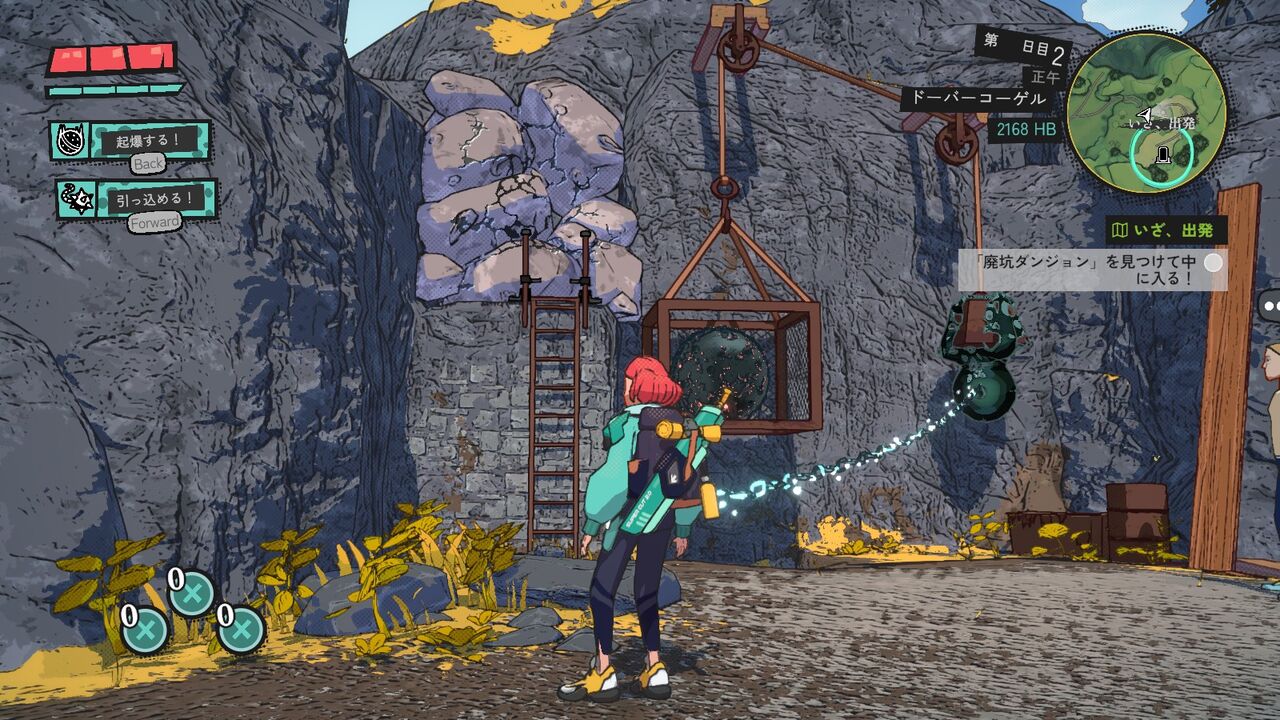 もう1つは「ボール&チェーン」。チェーン付きの小さい鉄球を前方と飛ばす。再度発動で引っ張って戻す。そこそこ飛距離があり、シンプルに遠くの物の破壊や敵への攻撃の他、引っ張ってギミックを作動させる場面も出てくる。