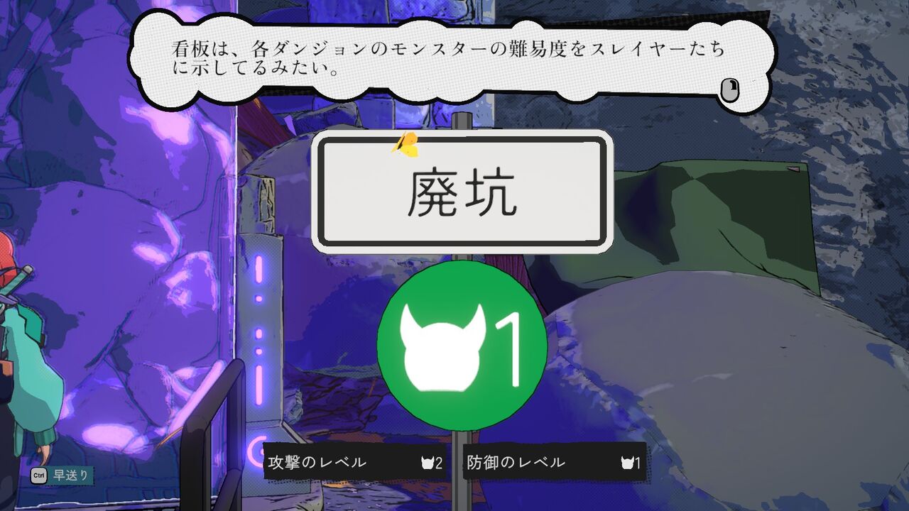 そんなこんなでダンジョンポータルを発見。ポータルの横には画像のようにダンジョンの名前とレベルが表示されているので、間違って高難度のダンジョンに入ってしまうということはないはず。