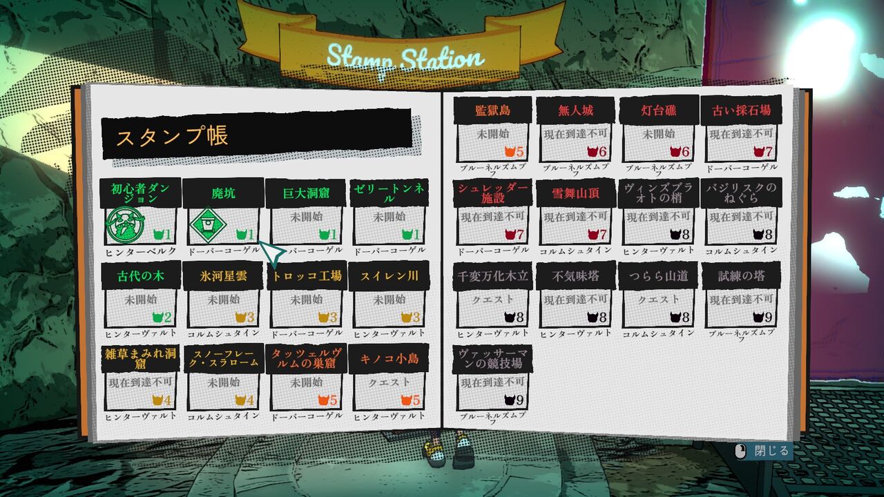 勝利したら出口ポータルの横にあるスタンプを押して帰還。ちゃんとそのダンジョンらしいスタンプのデザインなの良いね。