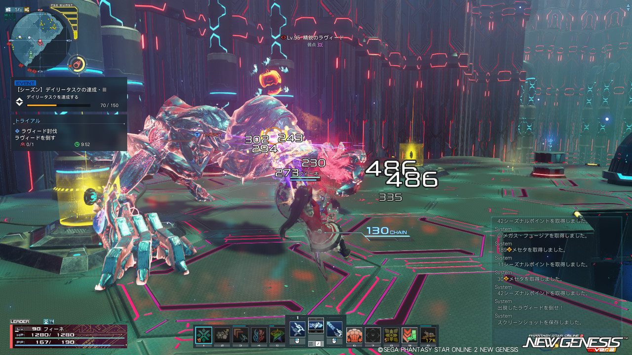 なお、ノイゼンプラントおよび来週実装のデクストベースではPSEレベルが4になると下がらなくなる。要するにEトラをクリアすれば確実にPSEバーストが発生するので、なおこのこと狩りやすくなった。
