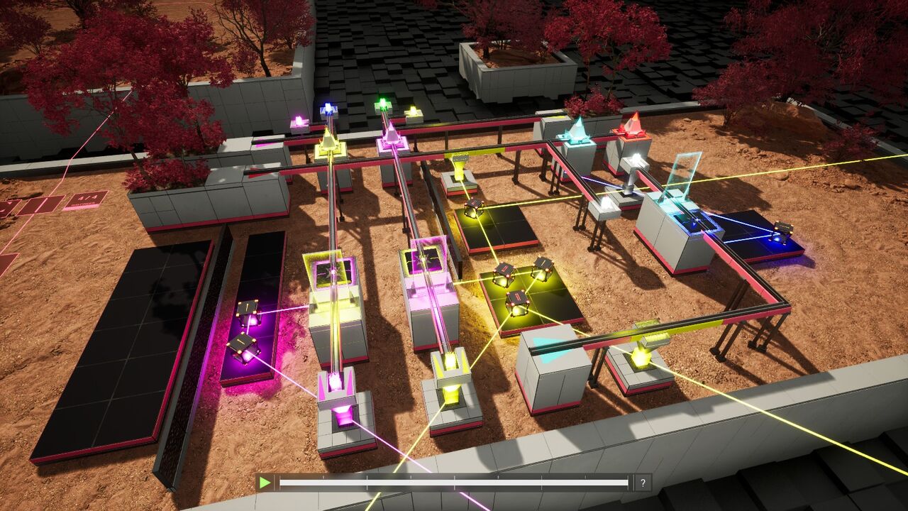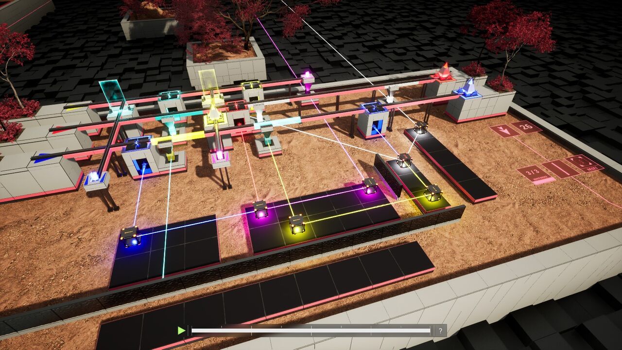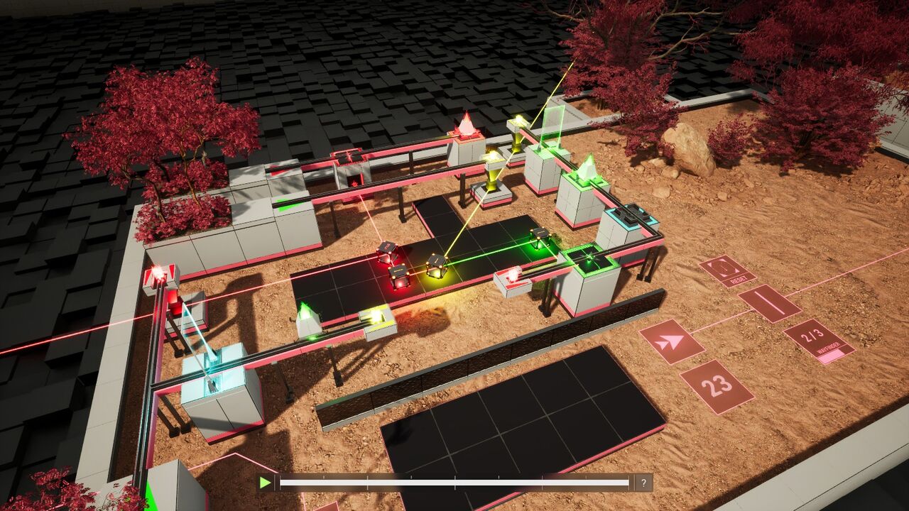 またこのパズルのように、特にはレーザーを大きく迂回させたり、後から起動するレーザーのことも考えたりすることも大切。