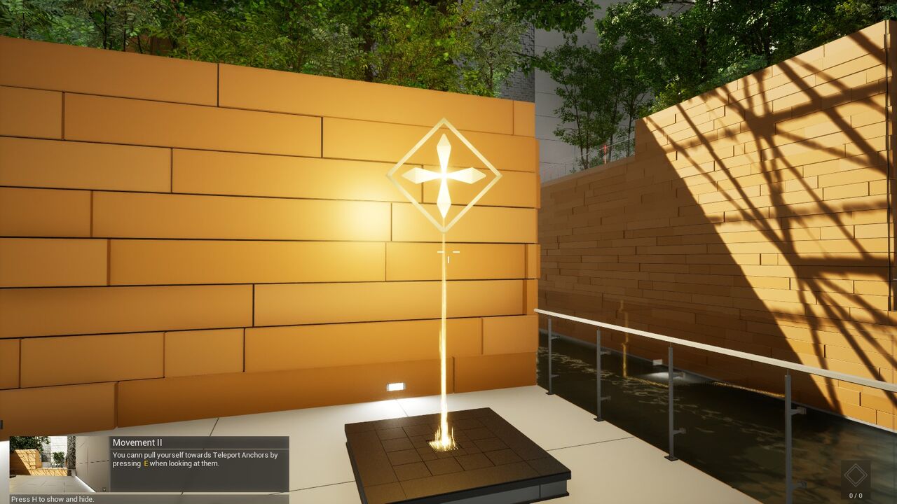 今作では新たに十字マークのついたオブジェクトが登場。「ジップラインマーク」と呼ぼうか。パズルには関係ないシステムで、十字マークにカーソルを合わせてEキーを押すことでジップラインみたいな感じで移動が出来る。途中下車は不可。