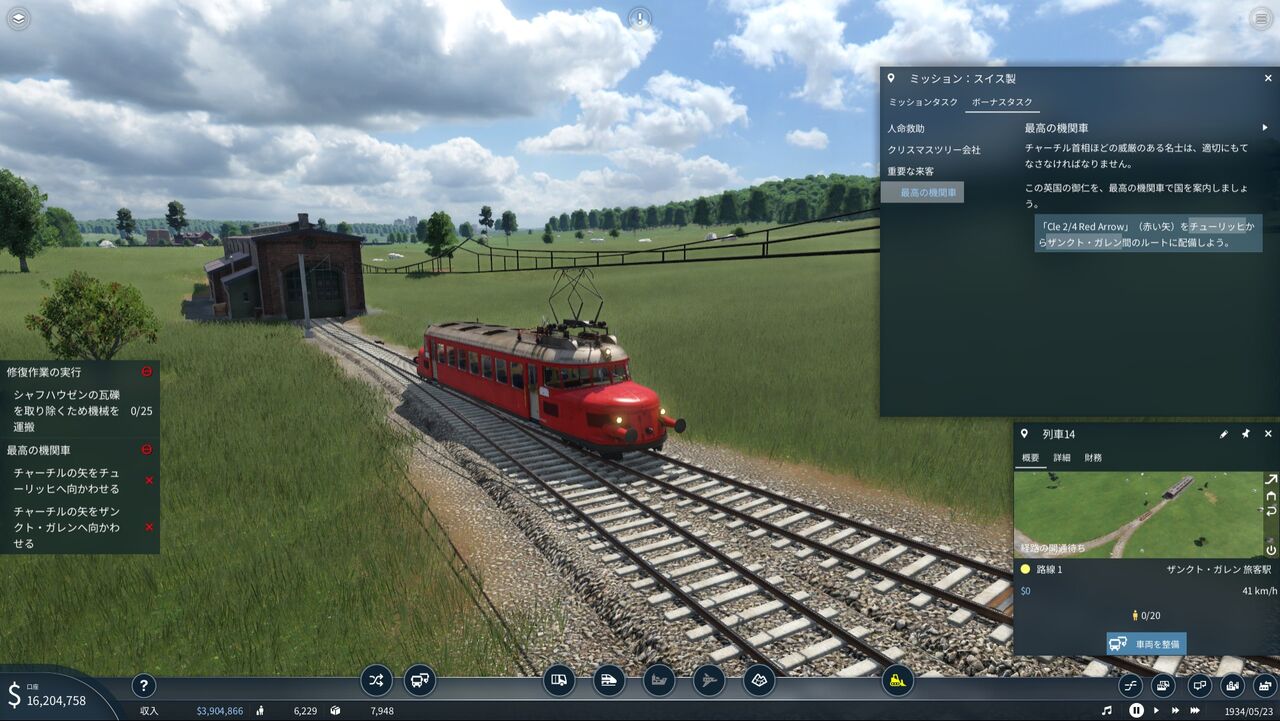 そんな時代のなかでプレイヤーは幸運にも出世したようで、赤字転落した国営鉄道「スイス連邦鉄道」の復興を任されることになる。