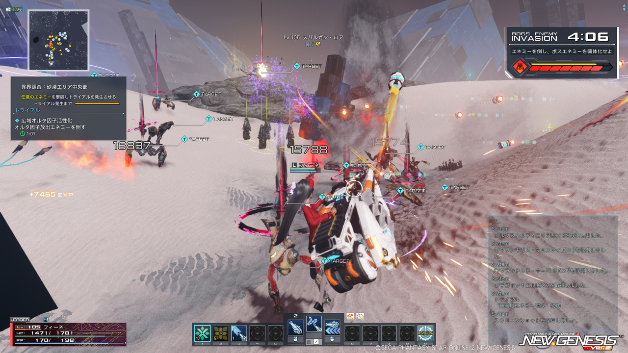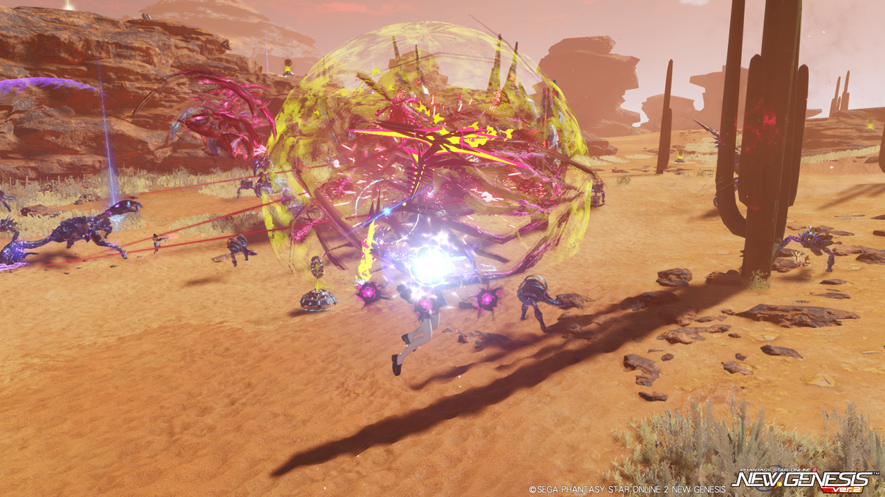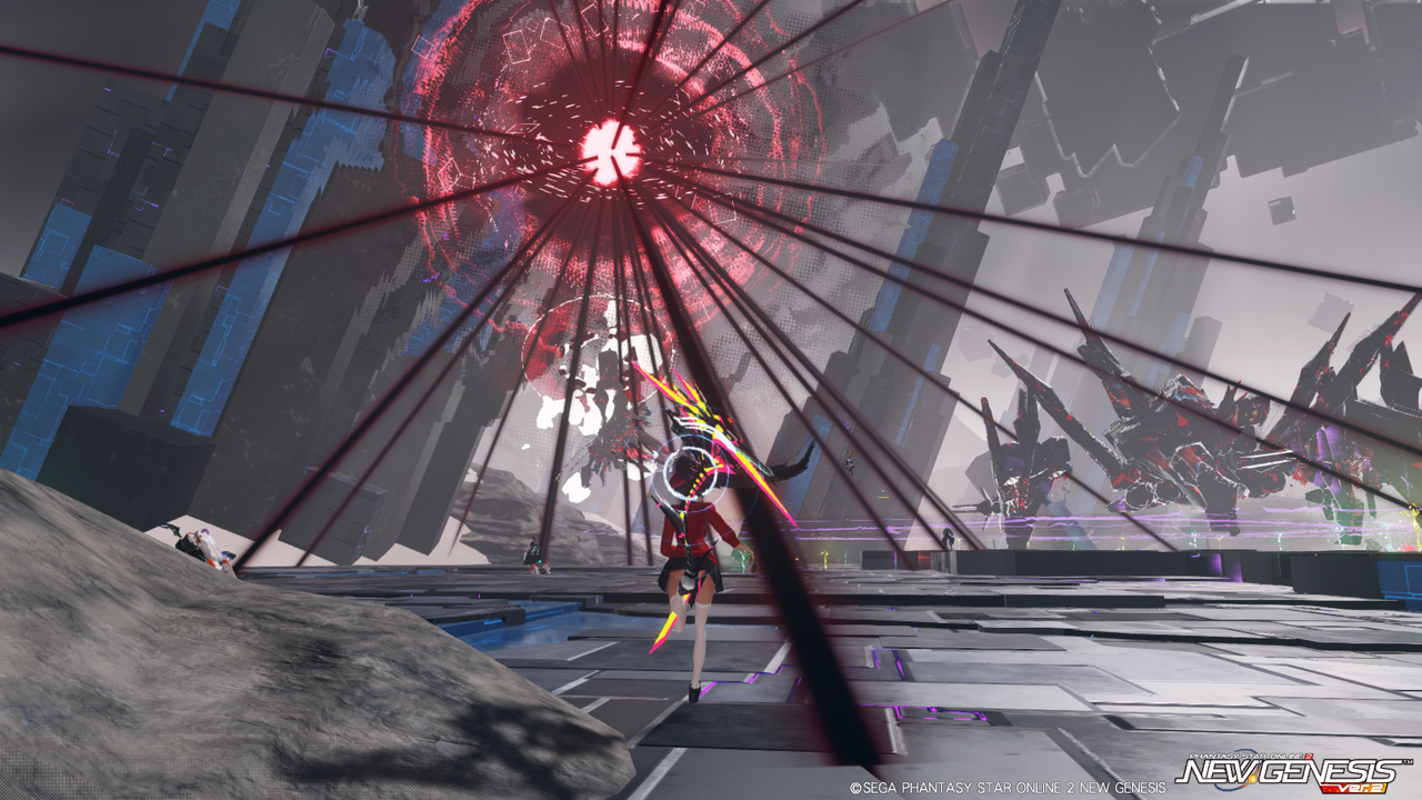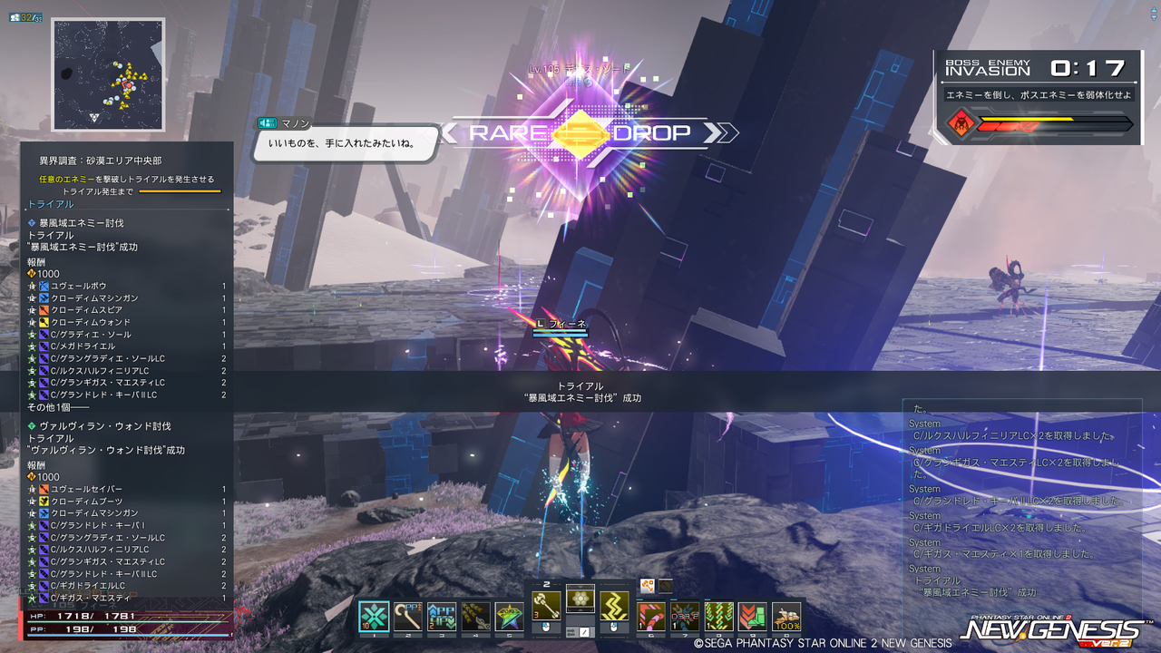 またフィールドの雰囲気から雑魚すら硬かった『PSO2』のアルティメットクエスト(壊世調査)を思い浮かべるが、ボスが湧くまでの雑魚敵やトライアルのボスエネミーは他のエリアとそう変わらずHPが高いわけでもなく、最大32人ということもあって結構サクサク狩れるのでストレスにはならない。