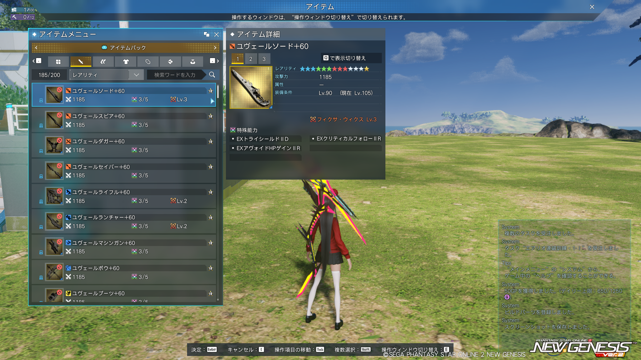 新★13武器「ユヴェール」シリーズが登場。「クレス」よりは数値も威力倍率もやや下になる。潜在はクリティカル率とダメージ耐性が上昇、PP消費量軽減、PBゲージの増加量アップ。