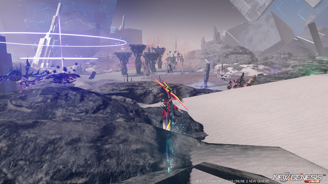 内容としては探索セクションに近い形で、レイヨルド峡江やメディオラ外殻第1区(アプデ後)をより発展させたような感じ。主な目的は8分毎に出現する強力な『ハイエネミー』ボスの撃破となる。なおネームレスシティのように制限時間はないので、気が済むまで篭れる(『PSO2』のフリーフィールドみたいな)。