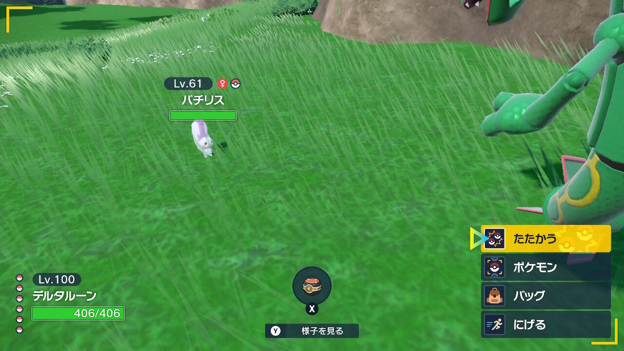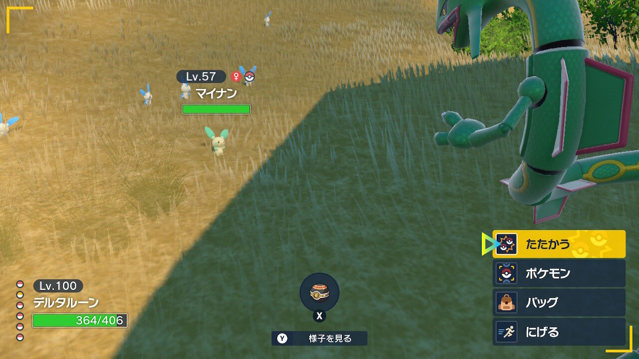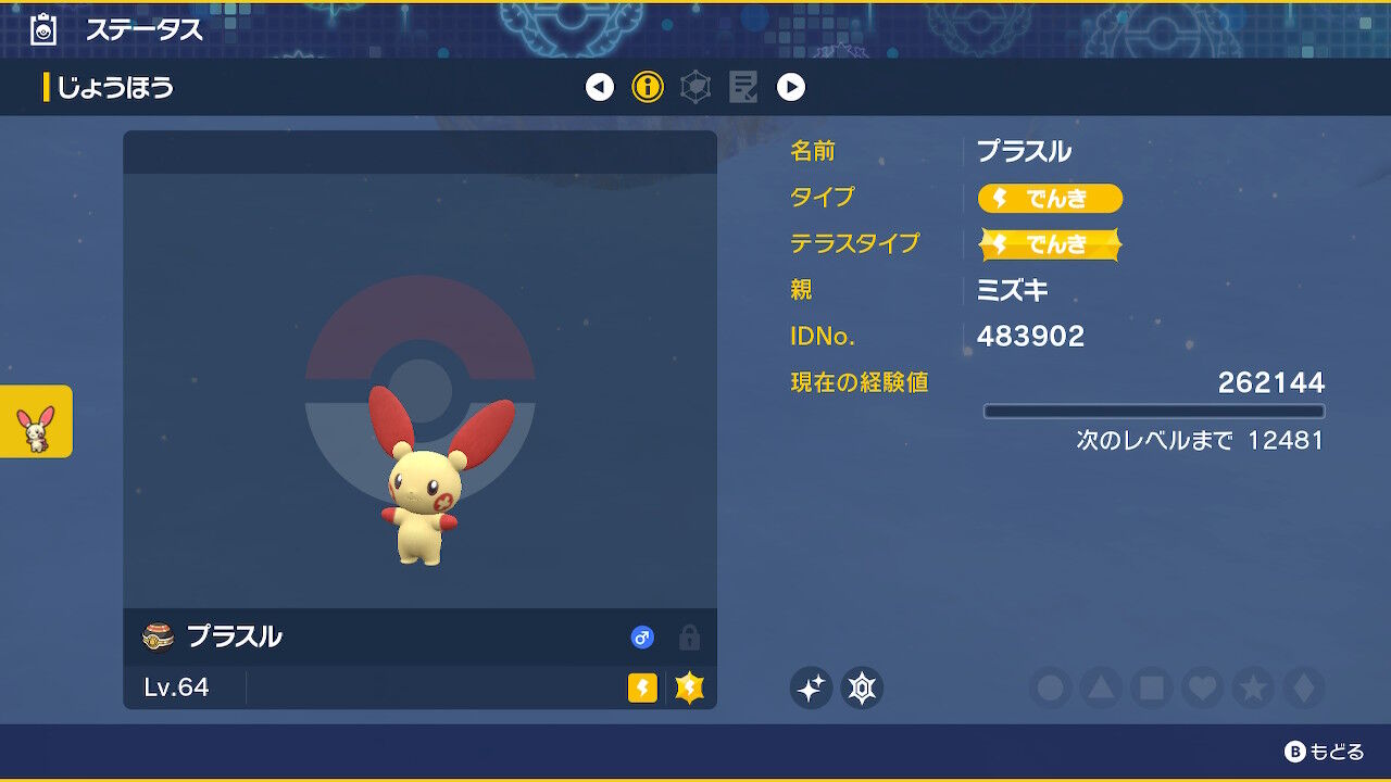ブルーベリー学園へ行き、「プラスル」。こいつだけは全く色違いがわからない。一応赤い部分が濃くなっているらしいのだが、レッツゴーを拒否されてやっと気づくレベル。