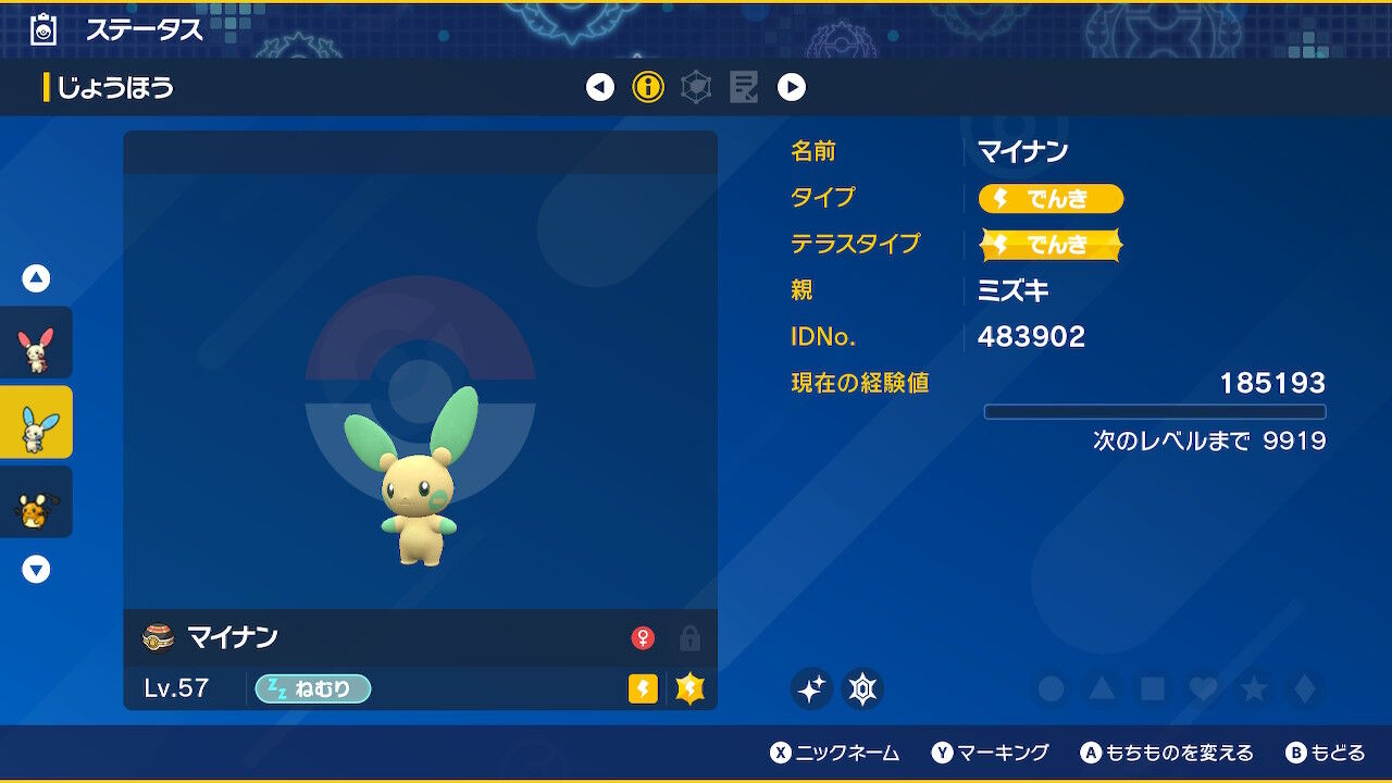 最後は「マイナン」。こちらは水色の部分が緑になっていてとてもわかりやすい。どうしてマイナンはわかりやすいのにプラスルはああなってしまったのか。