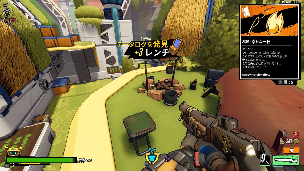 なお後で気付いたが、他にも何か所か掘れる場所があってデータログが隠されているようなので、ショベルの出番はまだまだある。先述したように武器枠1個潰しながら探さねばならないのはちょっと困るが…