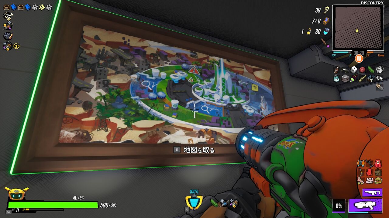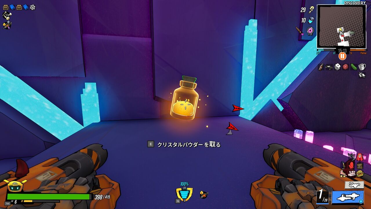 さらにガジェット「ワイヤーフック」が拾える。壁に向けてインタラクトキーを押すことで射出されて、一気にそこまで移動できる。使用後は数秒間のクールタイムあり。ますます機動力が高まってしまった。これに関しては誤爆がちょっと怖いが。