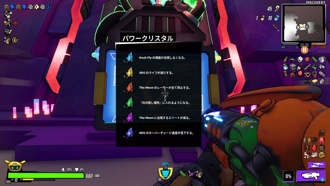 ただこれ、パワーセル同様にその周回でしかカウントされないようなので、「月の隠し場所」で3個要求されるということはパワークリスタルが手に入るエリアを1周で3か所通るルート取りをする必要があることになる。となるとおそらく「CAYNONS」→『「OASIS」(中間まで3分以内)→「THE RIFT」』or『「RUINS」→「SCRAPYARD」』→「FIELDS」→「DOOM GARDEN」→「AQUA STATION」→「FUSION CORE」→「HAVEN CITY」~「THE MOON」ってルートかな?(赤字がパワークリスタルのあるエリア)