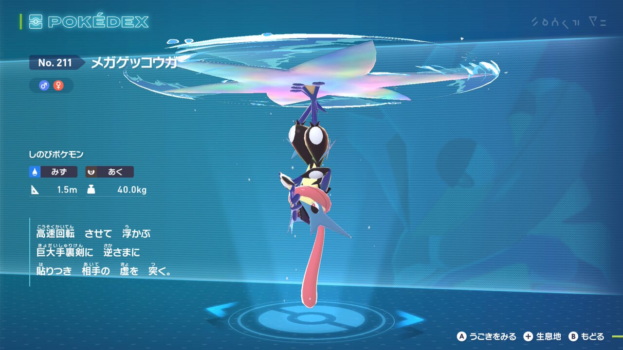 というわけで「メガゲッコウガ」「メガマフォクシー」です。後から配信されるのは図鑑に載らない印象があったが、この前のディアンシーもそうだったけど今回はちゃんと図鑑に載るのね。