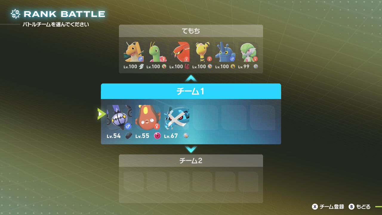 ランクマは4人での乱戦。手持ちは3体で、交代は3回まで使用可能。
