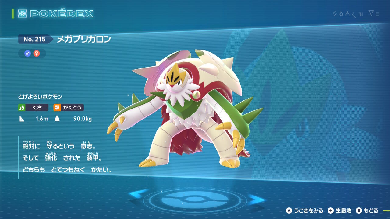 で、こちらが「メガブリガロン」。タイプは変わらず「草/格闘」。