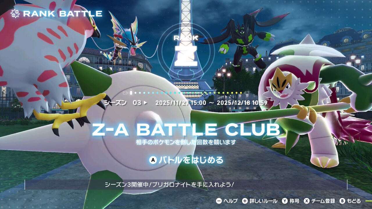 シーズン3からは「ジガルデ」が解禁され、ZAにいる一通りのポケモンが使えるようになった。ただし「ゼルネアス」「イベルタル」「ジガルデ」「ディアンシー」はどれか1体のみ使用可。また期間内に「M次元ラッシュ」の配信が始まるが、追加ポケモン・追加メガシンカはシーズン3では使用不可の模様。