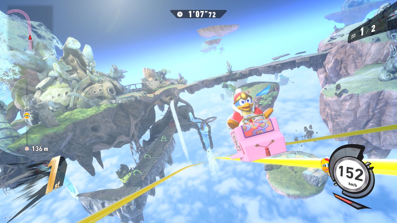 コースはもちろんのこと、キャラとマシンの組み合わせもまだよくわからないので、とりあえずテキトーに選んでテキトーに走ってみた。今回もCP Lv.3を相手にしてるけど、組み合わせによってはなんか全然速度出なかったり、上手く加速できなかったりで、なんか普通に追い付けなかったりして、難しさを感じた。とりあえずまずはキャラとマシンの解禁をしつつ、コースを覚えるところからだなぁ。